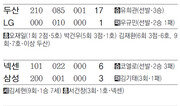 “야구 센스가 좋네.” “직구가 살아 들어오네. 어깨가 싱싱하다.” 12일 서울 목동구장에서 열린 제70회 황금사자기 전국고교야구대회 및 주말리그 왕중왕전 16강 경기를 지켜보던 10개 프로 구단 스카우트들은 일제히 한 선수를 주목했다. 스카우트들은 효천고 유승철(3학년)의 습관과 버릇까지 꼼꼼하게 분석하며 칭찬을 아끼지 않았다. 이날 효천고는 유승철의 투타에 걸친 활약에 힘입어 유신고를 2-1로 누르고 8강에 진출했다. 먼저 기선을 제압한 쪽은 유신고였다. 유신고는 1회말 서기환(3학년)의 안타와 볼넷 2개로 얻은 1사 만루에서 최지원(3학년)의 희생플라이로 1점을 얻었다. 그러나 반격에 나선 효천고는 3회초 양선빈(3학년)의 볼넷, 양인호(2학년)의 안타와 상대 투수의 폭투로 얻은 1사 2, 3루에서 유승철의 적시타로 주자들을 모두 홈으로 불러 들이며 경기를 뒤집었다. 유승철은 선발 투수 강진호(3학년)가 6회말 1사 1, 2루의 위기를 맞자 투수로 마운드에 올라 유신고의 최지원을 병살타로 잡아내며 불을 껐다. 유승철은 이후 최고 147km의 직구와 낙차 큰 커브로 유신고의 추격 의지를 꺾었다. 유승철은 3과 3분의 2이닝 동안 안타를 하나도 내주지 않고 삼진은 7개나 잡아냈다. 지난해까지 포수로 뛰었던 유승철은 올해 투수로 전향해 전반기 주말리그에서 잠재력을 뽐냈다. 4월 주말리그 경기에서는 직구 구속이 150km까지 나왔다. 타석에서도 오른쪽과 왼쪽 타석에 번갈아 나와 날카로운 타구를 만들어내는 재능도 보여줬다. 서창기 효천고 감독은 “포수 자리에서 송구할 때 손목 힘이 눈에 띄어 투수를 시켰다. 투수로 공을 던진 게 5개월 정도 됐다. 아직 다듬는 과정”이라고 말했다. 유승철은 “유신고 타자들이 당겨 쳐 바깥쪽 직구로 승부한 게 통했다”며 “슬라이더와 반 포크볼을 연습하고 있다. kt 김재윤 선배처럼 포수에서 투수로 성공하는 선수가 되고 싶다”고 말했다. 동산고도 마산고를 꺾고 8강에 올랐다. 동산고는 2회초 마산고에 선취점을 내줬지만 2회말 3안타로 동점을 만들었다. 4회말 박유연(3학년)의 2루타와 정수근(3학년)의 적시타로 역전에 성공한 동산고는 5회 2점, 7회 한 점을 추가하며 경기를 마무리했다. 마산용마고도 야탑고를 6-1로 꺾고 8강에 합류했다.유재영기자 elegant@donga.com}