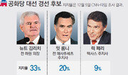 2012년 미국 대선 레이스의 공식 개막을 알리는 아이오와 주 코커스(당원대회)를 엿새 앞두고 그동안 선두를 달리던 뉴트 깅리치 전 하원의장의 지지율이 급락했다. CNN, 타임, 조사전문기관 ORC가 아이오와 코커스에 참가하겠다는 공화당원을 대상으로 실시해 28일 발표한 공동 여론조사에서 밋 롬니 전 매사추세츠 주지사(사진)가 25%의 지지율로 1위에 올랐다. 이달 초 실시된 같은 조사에서 지지율 33%로 1위였던 깅리치 전 의장은 이번 조사에서 14%를 차지해 4위로 추락했다. 2, 3위는 론 폴 하원의원(22%)과 릭 샌토럼 전 상원의원(15%)이 각각 차지했다. 깅리치 전 의장의 추락 원인은 최근 이혼 논란이 다시 불거졌고 다른 후보들의 집중 견제를 받았기 때문인 것으로 분석된다. CNN은 깅리치 전 의장과 첫 번째 부인의 1980년도 이혼서류를 입수해 깅리치 전 의장이 당시 암 투병 중이던 부인의 병상까지 찾아가 이혼을 요구한 것이 맞다고 26일 보도했다. 그동안 깅리치 전 의장은 부인 쪽이 먼저 이혼을 요구했다고 주장해왔다. 전문가들은 깅리치 전 의장의 급락세가 뚜렷해지면서 롬니 대세론이 굳어질 것으로 보고 있다. 롬니 전 주지사는 CNN, 타임, ORC가 뉴햄프셔 프라이머리에 참여하겠다는 공화당 유권자들을 대상으로 실시한 여론조사에서도 44%로 1위에 올랐다. 폴 의원(17%)과 깅리치 전 의장(16%)이 뒤를 이었다. 이번 조사는 크리스마스(25일)를 제외한 21∼27일 실시됐다.워싱턴=정미경 특파원 mickey@donga.com}