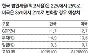 내년 한국의 법인세율이 미국보다 높아지면 연평균 29조4000억 원의 국내총생산(GDP) 감소가 불가피할 것이라는 연구결과가 나왔다. 일자리도 매년 10만5000명씩 줄어들 것으로 예상돼 고용시장에 한파가 몰아칠 수 있다는 우려가 제기된다. 27일 한국경제연구원은 ‘한미(韓美) 법인세율 역전에 따른 경제적 영향’ 보고서를 냈다. 내년 미국은 법인세 최고세율을 35%에서 21%로 낮추고 한국은 최고세율을 22%에서 25%로 올릴 계획이다. 양국의 법인세율 역전은 국내 기업의 경쟁력 약화와 가계소득 감소로 이어질 것이라는 우려가 꾸준히 제기됐다. 연구원은 가장 먼저 GDP 타격이 불가피할 것이라고 분석했다. 법인세율이 높아지면 기업이 부담하는 비용이 늘고 투자가 줄어든다. 이는 자본의 해외 유출로 이어진다. 연구원은 “향후 10년간 한국 GDP는 연평균 1.7% 감소할 것”이라고 분석했다. 또 법인세율 인상이 민간투자 감소로 이어지면서 국내 투자는 연평균 4.9%씩 줄어들 것이라고 내다봤다. 문재인 정부의 역점 사업인 ‘일자리’에도 빙하기가 올 가능성이 제기됐다. 연구원은 법인세율 인상 영향으로 내년부터 연간 10만5000개씩의 일자리가 사라질 것이라고 분석했다. 이는 가계소득 감소로 이어질 수밖에 없어 현 정부의 ‘소득주도 경제성장’ 정책에 타격이 예상된다. 여파는 저소득 계층과 일용직 노동자 등 사회적 약자 계층이 가장 먼저 받을 것으로 전망된다. 연구원은 “경제위기 때마다 성장이 둔화되면 비숙련 노동자의 임금 삭감과 해고가 가장 많았다”고 경고했다. 수출도 연간 0.5%씩 줄고, 수입은 1.1%씩 줄어 수치상으로는 무역수지 적자가 8.9% 개선되는 효과가 있지만 결국 전체 무역 규모가 줄어드는 상황을 피할 수 없을 것으로 보인다. 세율이 낮은 미국으로의 ‘자본 쏠림’ 현상도 나타날 것으로 보인다. 연구원은 앞으로 10년간 미국의 국내 투자는 연평균 13.6% 늘고, 고용은 매년 81만8000명씩 증가할 것으로 내다봤다. GDP도 연평균 2.7%씩 성장할 것으로 분석했다. 법인세율 인하는 기업의 자본 성장과 근로자 1인당 자본비율 증가로 이어져 결국 임금 상승 효과도 불러올 것으로 내다봤다. 또 임금 상승은 가계소득 증가, 소득 재분배 등 긍정적인 경제적 효과를 불러올 것으로 분석됐다. 미국의 이번 세제 개편은 ‘세원은 넓히고 세율은 낮추는’ 방식으로 세금제도를 단순하게 바꿨다. 미국은 법인세를 낮추는 동시에 비과세 감면 혜택 축소, 최저한세율(기업이 최소한으로 부담해야 하는 세율) 폐지, 영토주의 과세 체계로의 전환 등을 함께 추진 중이다. ‘일부가 많이 내는’ 구조에서 ‘모두가 조금씩 내는’ 구조로 바꾼 것이다. 반면 한국은 세금을 내지 않는 면세자는 그대로 두고 일부 대기업만 세율을 더 높이는 식이다. 전문가들 사이에서는 “저소득 계층이나 매출이 적은 기업도 최소한의 세금을 내도록 하는 구조로 바꿔야 한다”는 지적이 꾸준히 나온다. 한국 기업의 경쟁력을 높이기 위해서는 연구개발 투자세액 공제를 늘리고 최저한세제를 폐지해야 한다는 요구가 나온다. 조경엽 한국경제연구원 연구위원은 “법인세 부담을 완화할 수 있는 세제 개편을 서둘러야 한다”고 지적했다.이은택 기자 nabi@donga.com}