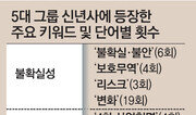 ‘불확실성’ ‘4차 산업혁명’ ‘책임경영’. 2일 국내 주요 그룹이 발표한 2018년 신년사에 공통적으로 담긴 키워드다. 기업 신년사는 올 한 해 재계 주요 화두와 기업별 생존 방식을 들여다볼 수 있는 핵심 메시지다. 처한 상황은 다르지만 각 그룹의 새해 신년사에는 불확실한 글로벌 경제와 4차 산업혁명 파고 속에서 혁신을 통해 생존해야 한다는 주문이 담겨 있었다. ○ “불확실성 극복하고 4차 산업혁명 주도” 삼성전자 현대자동차 SK LG 롯데 등 국내 5대 그룹 신년사에서 가장 많이 언급된 단어는 ‘혁신’(23회)이었다. 그 어느 해보다 혁신에 대한 강한 주문이 이어진 건 국내외 불확실한 경제 상황에 대한 우려가 크기 때문으로 보인다. 김기남 삼성전자 사장은 “올해 세계 경제는 자국 우선주의, 보호무역주의 확산, 지정학적 리스크 등 불확실성이 더욱 커질 것으로 전망된다”며 사상 최대 실적을 냈던 지난해의 성과에 안주해선 안 된다고 경고했다. 구본준 LG그룹 부회장 역시 “보호무역의 거센 파고와 글로벌 경기 악화 가능성 등 정치·경제 환경은 시간이 지날수록 예측 자체가 어려울 정도”라며 “근본적인 혁신”을 주문했다. 조양호 한진그룹 회장은 “지정학적인 정세는 여전히 불안하며 유가와 금리 상승은 원가 부담을 가중시키고 있다”고 했다. 손경식 CJ 회장은 최저임금 인상에 따른 기업들의 비용 부담 증가와 금리 인상에 따른 가계 이자 부담 증가가 내수 회복에 걸림돌로 작용할 가능성이 높다고 우려했다. 4차 산업혁명의 가속화에 따른 글로벌 기술 경쟁도 기업들이 올 한 해 반드시 해결해야 할 큰 숙제다. 업종에 관계없이 대부분의 기업이 ‘기술’(12회)과 ‘연구개발(R&D)’(3회)을 통한 근본적인 체질 ‘변화’(19회)를 해답으로 꼽았다. 김기남 사장은 “인공지능 자율주행 빅데이터 등 정보기술(IT) 산업의 급격한 패러다임 변화는 새로운 도전을 요구하고 있다”며 “창의적이고 혁신적인 기술 개발 문화를 사내에 정착시켜 4차 산업혁명 시대를 주도해야 한다”고 했다. 정몽구 현대차 회장은 자율주행 등 미래 핵심 기술에 대한 투자 확대를 주문했다. 신동빈 롯데 회장은 “그룹 전반에 디지털 전환을 이뤄 달라”며 “인공지능 사물인터넷 가상현실 등 첨단 기술을 모든 사업 프로세스에 적용해 4차 산업혁명 시대에 글로벌 경쟁 우위를 확보해야 한다”고 했다. 김승연 한화그룹 회장은 “기존의 시장 경쟁 구도를 파괴하고 있는 4차 산업혁명은 더 강력한 변혁을 촉구하고 있다”고 진단하고 그룹의 소프트파워 경쟁력을 일류 수준으로 혁신해줄 것과 이를 위한 인재 확보를 주문했다. 조현준 효성 회장은 “4차 산업혁명 확산으로 모든 산업에서 데이터 축적 및 분석과 이를 기반으로 한 전략이 실행되고 있는데 효성은 시장과 고객, 기술 분야의 데이터 축적이 제대로 되지 않고 있다”며 “변화가 시급하다”고 지적했다. 허창수 GS 회장은 ‘절차탁마(切磋琢磨·칼로 다듬고 줄로 쓸며 망치로 쪼고 숫돌로 간다)’의 자세로 지속적으로 역량을 쌓아 경쟁력을 확보해 달라고 주문했다. 구자열 LS 회장은 ‘변화에 한발 앞서 대응하고 미래를 주도적으로 개척한다’는 ‘응변창신(應變創新)’의 마음가짐을 당부했다. ▼ ‘고객’ 21회 언급… 국민신뢰 회복 의지 담겨 ▼○ “사회로부터 신뢰 회복해야” 올해 신년사에는 ‘고객’(21회), ‘사랑·신뢰·존경’(4회), ‘투명성’(3회) 등의 표현이 유독 여러 차례 등장했다. 삼성전자는 법규를 준수하고 상생을 통한 기여로 고객과 사회로부터 사랑받는 회사가 되는 것을 올 한 해 3대 과제 중 하나로 꼽았다. 구본준 부회장 역시 “정도경영을 바탕으로 경영의 투명성을 높이고 국민과 사회로부터 더 신뢰받는 기업이 되자”고 했다. 최태원 SK 회장은 “경제적 가치뿐 아니라 사회적 가치를 함께 추구하는 새로운 SK의 원년으로 만들자”고 제안했다. 신동빈 회장은 “주변과 항상 나누고 함께 성장하는 존경받는 기업이 되기 위해 노력하자”며 “경영 투명성을 갖추고 기업의 사회적 책임을 다하며, 사회적 가치 창출을 기반으로 경영 활동을 해나가겠다”고 했다. 황창규 KT 회장도 새로운 일자리 창출과 우수 중소기업 지원 등을 통해 국민들이 기대하는 기업의 역할을 해내자고 당부했다.○ “일하는 방식부터 바꾸자” 산업 패러다임 변화에 맞춰 일하는 방식부터 근본적으로 바꿔보자는 주문도 담겼다. 최태원 회장은 조직 전반의 ‘딥체인지(Deep Change)’를 위한 한 가지 방법으로 사무 공간의 변화에서 시작되는 일하는 방식의 혁신을 꼽았다. 같은 조직과 공간에서 많은 시간을 투자하는 것이 일하는 것이라는 고정관념에서 벗어나 프로젝트 중심의 공간에서 협업과 공유를 활성화하는 환경으로 업무 공간을 바꾸겠다는 뜻이다. 최근 대기업 최초로 주 35시간 근무제를 적용한 신세계그룹의 정용진 부회장은 “주 35시간 근무제는 국내 대기업 중 최초로 시행하는 것으로, 성공적인 사례로 잘 정착될 수 있도록 함께 노력해야 한다”고 강조했다. 권오준 포스코 회장은 “차세대 융복합 사업과 성장 사업을 발굴하기 위해 개방