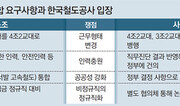 《“현재 3조 2교대 근무자들의 주간 근무시간이 39.3시간인데 철도노조 (증원) 요구를 바탕으로 4조 2교대를 단순 계산하면 주 31시간이다. 한국철도공사(코레일) 안을 따라도 주 35시간이다. 선진국 수준이고 좋기는 하겠지만 국민이 동의하겠나.” 20일 정부세종청사 ‘철도노조 파업 대비 정부합동 비상수송대책본부’를 찾은 김경욱 국토교통부 2차관은 작심한 듯 이같이 발언했다. 김 차관은 “코레일이 증원(1865명)을 요청해 왔는데, 구체적인 증원 내용과 산정 근거, 재원 대책이 함께 있어야 검토가 가능하다”며 “무작정 증원하면 국민 부담으로 돌아온다”고 말했다. 또 “자구노력 계획도 안 보인다”고 밝혔다.》 철도노조는 코레일 사측과의 6개월간 30여 차례 교섭에서 크게 4가지를 요구해 왔다. △총액인건비 상승 △4조 2교대 근무에 따른 안전인력 확충 △생명안전업무 정규직화와 자회사 임금 개선 △코레일-수서발 고속철도 운영사(SR) 통합 등이다. 핵심 쟁점은 4조 2교대에 필요한 인력 충원 규모다. 지난해 6월 노사가 맺은 ‘교대근무체계 개편을 위한 노사합의서’ 때문이다. 합의를 해 준 사람은 오영식 당시 코레일 사장이었다. 더불어민주당 소속으로 3선 국회의원 출신인 오 전 사장은 지난해 2월 취임 이후 친노조 행보를 보였다. 대표적으로 취임 직후 해고자 90여 명을 전원 복직시켰는데 당시 복직한 이들 가운데 한 명이 현재 철도노조를 이끌고 있는 조상수 철도노조 위원장이다. 합의서에는 근무체계 개편은 4조 2교대를 기본으로 하고, 2020년 1월 1일부터 근무 체계를 개편한다는 내용이 담겨 있다. 인력 충원 규모는 노사공동 직무진단을 통해 도출한다고 돼 있다. 하지만 코레일은 즉각 직무진단에 나서지 않았다. 코레일 관계자는 “공공기관의 용역은 반드시 그해 1∼12월 사이에 끝나게 돼 있는데 직무진단 용역은 최소 10개월이 필요해 올해 1월에 발주할 수밖에 없었다”며 “개편 시기를 2020년 1월로 못 박았던 것은 성급한 측면이 있다”고 말했다. 손병석 코레일 사장은 이날 대국민 사과문을 발표한 이후 이어진 질의응답 과정에서 “2005년 기존 2조 2교대 근무가 3조 2교대로 전환될 때도 2∼3년의 기간이 필요했다”며 성급한 합의였음을 시사했다. 코레일은 외부 회계법인을 통해 진행한 직무진단 결과 조직 효율화 등을 통해 1865명의 인력 충원으로 4조 2교대 전환이 가능하다는 입장으로 맞서고 있다. 코레일 관계자는 “노사 간에 합의를 하더라도 상위 기관인 국토부 등의 승인이 필요하다”며 “노조의 요구를 들어준다면 연간 5000억 원 이상의 예산이 추가로 필요한데 현재도 누적 부채가 16조 원 수준인데 어떻게 감당할 수 있겠느냐”고 말했다. 국토부는 코레일이 주장하는 1800여 명만 증원해도 매년 3000억 원의 적자가 날 것으로 추산하고 있다. 철도노조는 총액인건비 4% 상승을 요구하고 있지만 코레일은 공공기관 임금 인상 가이드라인 1.8%를 지킬 수밖에 없는 입장이다. 코레일-SR 통합 요구도 사측은 정부의 판단이 필요한 사안으로 사측의 결정권을 넘어섰기 때문에 교섭 대상이 아니라고 보고 있다. 철도노조 집행부가 이날부터 파업을 강행했지만 정작 노조원들 사이에서는 반감의 목소리도 나온다. 특히 젊은 노조원들을 중심으로 비판의 목소리가 큰 것으로 알려졌다. 수도권의 한 역사에서 근무하는 코레일 직원 박모 씨(31)는 “사측이 들어줄 수 없는 요구를 내세우며 노조가 무리하게 파업만 강행하는 것 같다는 의견을 동기들과 나눈다”며 “파업으로 인해 월급만 줄어드는 것에 대한 불만도 크다”고 말했다. 노사합의는 쉽지 않아 보인다. 철도노조 관계자는 “코레일과 정부가 전향적인 안을 내놓지 않는 이상 교섭에 나설 수 없다는 입장”이라며 “사측과 추가 교섭 일정을 잡지 않은 상태”라고 밝혔다.유원모 기자 onemore@donga.com}