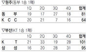 KT가 삼성과의 시즌 두 번째 맞대결에서 승리하며 3차 연장까지 가는 접전 끝에 내준 1차전 패배를 깨끗하게 설욕했다. KT는 2일 부산에서 열린 삼성과의 홈경기에서 101-95로 이기고 9승(5패)째를 올렸다. KT는 광저우 아시아경기 대표에 차출됐다 돌아온 조성민이 1차전 연장패 설욕을 이끌었다. 1쿼터에 2득점에 그친 조성민은 2쿼터 들어 3점슛 2개를 포함해 15점을 몰아넣으면서 삼성과의 점수 차를 벌리는 데 앞장섰다. 2쿼터에만 조성민과 박상오가 25득점을 합작한 KT는 전반을 54-36으로 크게 앞서 일찌감치 승기를 잡았다. 조성민(30득점)과 박상오(27득점)는 둘 다 한 경기 개인 최다 득점을 기록하며 팀 득점의 절반이 넘는 57점을 도맡아 해결했다. 아시아경기에서 자유투 난조에 허덕였던 조성민은 이날 11개의 자유투를 모두 적중시켰다. 조성민은 “아시아경기 복귀 후 첫 경기였던 동부전에서 무득점에 그쳐 감독님과 동료들에게 미안했는데 오늘 승리에 힘을 보탠 것 같아 마음이 편안하다”고 말했다. 삼성은 3쿼터 중반부터 3점포가 살아나면서 추격에 나섰으나 초반에 벌어진 점수 차가 너무 컸다. 동부는 KCC와의 원주 홈경기에서 돌아온 만능 포워드 김주성의 활약을 앞세워 81-64의 완승을 거두고 5연승 행진을 이어갔다. 10승(4패) 고지에 오른 동부는 삼성과 공동 2위가 됐다. 김주성은 내외곽을 가리지 않는 전천후 활약으로 3점슛 2개를 포함해 25득점을 기록했다. 리바운드에서 24-33의 열세를 면치 못하고 2연패한 KCC는 9패(5승)째를 기록하며 공동 6위에서 8위로 추락했다.이종석 기자 wing@donga.com}
