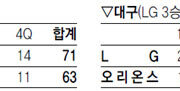 “그래도 맞짱 한 번 떠봐야 하지 않겠습니까.” 강을준 LG 감독은 15일 동부와의 창원 홈경기를 앞두고 “동부가 확실히 탄력을 받은 것 같다. 공동 선두가 세 팀이지만 그중 동부의 전력이 제일 낫다”고 치켜세우면서도 “우리도 상승세인 만큼 맞불 한번 놓아 보겠다”며 의욕을 보였다. 두 팀은 전날까지 나란히 3연승을 달리며 상승세를 타고 있었다. 수비력 1위 팀 동부와 공격력 2위 팀 LG의 전략은 일맥상통했다. 강동희 동부 감독은 “우리가 높이에서 우세하니까 외곽슛만 막으면 유리하다”고 했다. 강을준 감독은 “아무래도 리바운드에서는 밀리니까 외곽포가 터져줘야 승산이 있다”고 봤다. 전략대로 경기를 풀어간 팀은 동부였다. 동부는 LG의 외곽포를 차단하면서 77-70 승리를 거두고 14승(5패)째를 올렸다. 4연승을 달린 동부는 전자랜드와 공동 선두를 유지했고 LG와의 올 시즌 3경기도 모두 챙기며 우위를 보였다. 동부는 강동희 감독이 올 시즌 초반 선전의 주역으로 꼽은 3인방 김주성, 로드 벤슨, 윤호영의 삼각 편대를 중심으로 한 주전들의 고른 득점을 앞세워 한 차례의 리드도 허용하지 않는 경기 운영으로 승리를 챙겼다. 동부는 김주성(16득점), 로드 벤슨(21득점), 윤호영(10득점), 황진원(13득점), 박지현(9득점) 등 선발 출전한 5명이 공격을 고르게 나눠 맡으며 경기를 쉽게 풀어갔다. 짠물 수비로 10개 팀 중 막강 수비력을 자랑하는 동부는 전날까지 평균 득점 83.4점을 기록하던 LG의 공격을 70점으로 묶는 그물 수비의 위력도 여전했다. LG는 동부와의 앞선 두 경기에서 부진해 패배의 원인으로 지적됐던 문태영이 제 역할을 다하며 분전했으나 나머지 선수들이 받쳐주지 못해 동부의 벽을 넘지 못했다. 문태영은 자신의 평균 득점(21.7점)보다 많은 23점을 넣고 리바운드도 9개를 잡아내면서 공격과 수비에서 활약했으나 팀의 연승을 이어가는 데는 실패했다. 전자랜드는 삼성을 89-83으로 꺾고 2연패에서 벗어나며 14승(5패)째를 챙겼다. 전자랜드는 문태종이 25점을 넣고 14어시스트, 7리바운드로 트리플더블에 가까운 맹활약을 펼치며 승리를 이끌었다.창원=이종석 기자 wing@donga.com}