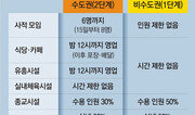 7월 1일 새로운 ‘사회적 거리 두기’가 시행돼도 전국 대부분 지역에서 사적 모임 인원이 제한된다. 2주간 서울 등 수도권 3곳과 제주에선 6명까지, 부산 광주 등 11곳에선 8명까지만 모일 수 있다. 인원 제한이 없는 곳은 충남뿐이다. 당초 비수도권은 대부분 인원 제한이 완전히 해제될 것으로 예상됐다. 하지만 최근 국내 신종 코로나바이러스 감염증(코로나19) 신규 확진자가 계속 증가하고, 인도발 ‘델타 변이’ 유입 가능성까지 높아지면서 단계적 완화 지역이 수도권뿐 아니라 비수도권으로 확대된 것이다. 기본적인 거리 두기 단계는 예상대로 결정됐다. 27일 중앙재난안전대책본부(중대본)에 따르면 서울 경기 인천 등 수도권은 2단계, 나머지 비수도권은 1단계로 분류됐다. 계획대로면 1단계인 비수도권에서 모임 인원 제한을 없애야 하지만 2주간 ‘완충 기간’을 둔 것이다. 특히 제주는 수도권과 마찬가지로 6명까지만 모임이 허용된다. 최근 확진자가 꾸준히 발생한데다 관광객이 대거 몰릴 것으로 보여서다. 대구는 29일 자체적으로 인원 기준을 밝힌다. 결국 17개 시도 중 충남만 7월 1일부터 인원 수에 상관없이 자유로운 모임이 가능하다. 정부와 각 시도는 14일까지 인원 제한을 적용한 뒤 연장 여부를 결정할 방침이다. 집회 참석 기준도 강화됐다. 당초 정부는 코로나19 백신 접종을 끝낸 사람은 집회 등에 참석하더라도 인원 산정에서 제외하기로 했다. 하지만 이번에 구체적인 방안을 결정하면서 접종 완료자도 집회, 시위에 참석할 때 대상 인원에 포함시키기로 했다. 그 대신 수도권의 식당 술집 카페 등의 영업시간은 계획대로 밤 12시까지로 연장된다. 정부가 새로운 거리 두기 도입 직전 ‘방역 강화’의 신호를 밝힌 건 심상찮은 코로나19 확산세 탓이다. 6월 마지막 주(20~26일) 국내 일평균 확진자 수는 491.6명으로 직전 주(444.6명)보다 10.6% 늘었다. 25일에는 해외에서 국내로 입국해 확진된 사람이 57명으로 지난해 7월 25일(86명) 이후 11개월 만에 가장 많았다. 그만큼 델타 변이 등 해외발 변이 바이러스 유입 가능성이 커진 셈이다. 이 때문에 정부는 추가 방역 조치도 검토 중이다. 손영래 중앙사고수습본부 사회전략반장은 이날 브리핑에서 “서울은 코로나19 유행 규모가 커 방역 조치를 더 강화하는 방안을 검토 중”이라고 밝혔다. 이지운 기자 easy@donga.com이지윤 기자 asap@donga.com}