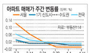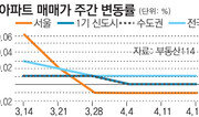 서울 아파트 평균매매가가 3주 연속 하락했다. 정부의 ‘주택 임대차시장 선진화 방안’ 발표 이후 매수심리가 위축되면서 거래가 줄었기 때문이다. 여기에 국내 최대 규모의 저층 재건축단지인 송파구 가락시영아파트가 대법원의 재건축 결의 취소 판결을 받으면서 사업 지연 우려까지 겹쳤다. 13일 부동산114는 서울지역 아파트 매매가가 0.01% 내렸다고 밝혔다. 강동(―0.07%) 성북(―0.06%) 양천(―0.04%) 강남(―0.03%) 송파구(―0.03%)의 하락폭이 컸다. 서울 재건축 단지는 지난주보다 내림 폭이 다소 둔화했지만 0.08% 떨어지며 4주 연속 하락했다. 1기 신도시와 수도권도 지난주에 이어 보합세(0.00%)를 보였다. 다만 평촌(0.02%)과 일산(0.01%) 등은 매매가가 올랐다. 전세시장은 안정된 모습을 보였다. 서울은 0.05% 소폭 상승했지만 1기 신도시는 0.04% 내리며 지난주보다 하락폭이 커졌다. 수도권은 0.01% 올랐다. 홍수영 기자 gaea@donga.com}