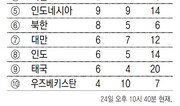 한국 여자 사이클의 간판 나아름(28·상주시청)이 도로와 트랙을 넘나들며 2018 자카르타-팔렘방 아시아경기 3번째 금메달을 목에 걸었다. 김유리(삼양사), 김현지(서울시청), 이주미(국민체육진흥공단), 나아름으로 구성된 한국 여자 단체추발 대표팀은 28일 인도네시아 자카르타 인터내셔널 벨로드롬에서 열린 트랙 여자 단체추발 결승에서 중국을 꺾고 금메달을 차지했다. 경기 기록은 4분31초222였다. 앞서 사이클 개인도로와 도로독주에서 금메달을 딴 나아름은 이번 대회 한국의 첫 3관왕이 됐다. 단일 아시아경기에서 도로 사이클과 트랙 두 종목에서 우승한 것은 나아름이 처음. 사이클 이혜진(연천군청)은 여자 경륜 은메달을 목에 걸었다. 양궁에서는 3개의 금메달이 쏟아졌다. 한국 선수끼리 결승에서 맞붙은 리커브 남자 경기에서는 김우진(26·청주시청)이 후배 이우석(21·상무)을 6-4로 이기고 2010년 광저우 대회 이후 8년 만에 개인전 금메달을 차지했다. 최보민, 송윤수, 소채원으로 구성된 여자 컴파운드 대표팀과 최용희, 김종호, 홍성호의 남자 컴파운드 대표팀은 각각 인도를 이기고 금메달을 따냈다. 세계 최강 한국 양궁은 총 8개의 금메달 중 4개를 획득하고 대회를 마감했다. 한국 여자 탁구는 단체전 준결승에서 중국에 0-3으로 패해 동메달을 보탰다. 이 종목에서 한국이 메달을 딴 것은 2010년 광저우 대회 동메달 이후 8년 만이다. 여자 장대높이뛰기에서는 임은지(성남시청)가 4m20을 넘어 3위를 차지하며 4년 전 인천 대회에 이어 2회 연속 동메달을 땄다. 여자 장대높이뛰기에서 아시아경기 메달을 수집한 한국 선수는 임은지뿐이다. 여자 축구는 준결승에서 일본에 1-2로 패했다.자카르타=이헌재 uni@donga.com / 조응형 기자}