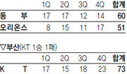 KT가 통신 라이벌 SK와의 시즌 두 번째 맞대결에서 승리하며 1차전 패배를 설욕했다. KT는 10일 부산에서 열린 SK와의 홈경기에서 73-65로 승리하며 8승(4패)째를 거뒀다. KT는 전날까지 공동 3위였던 SK를 5위로 밀어내고 단독 3위가 됐다. 통신업계 라이벌답게 동점 7차례와 역전 6차례가 나온 접전이었다. 4쿼터 막판까지 박빙이던 승부에서 KT는 3점포 두 방으로 승기를 잡았다. KT는 62-63으로 뒤진 종료 2분 26초 전 제스퍼 존슨의 3점슛으로 역전에 성공한 뒤 종료 29초를 남기고 67-65의 2점 차 불안한 리드 상황에서 박성운의 3점포로 승리를 굳혔다. KT는 20점을 넣은 존슨과 박상오 조동현(이상 14득점), 박성운(10득점) 등 주전들이 고르게 득점했다. 전창진 KT 감독은 “의식하지 않으려고 해도 SK는 같은 업계 팀이다 보니 신경이 쓰이는 면이 있다. 그런 팀과의 경기에서 선수들이 끝까지 집중력을 잃지 않은 것이 승인이다”고 말했다. 3일 KT전 승리를 시작으로 3연승을 달리던 SK는 테렌스 레더와 김효범이 48득점을 합작했지만 나머지 선수들이 받쳐 주지 못했다. 레더는 28득점, 김효범은 3점슛 6개를 포함해 20점을 넣었다. 동부는 김승현 사태로 어수선한 오리온스와의 원주 안방경기에서 25득점, 15리바운드로 골밑을 장악한 로드 벤슨을 앞세워 60-51로 이기고 7승(4패)째를 올려 4위로 한 단계 올라섰다. 동부는 60점밖에 넣지 못하는 부진한 공격력을 보였으나 더 심한 난조를 보인 오리온스의 외곽슛 덕에 승리를 챙겼다. 이종석 기자 wing@donga.com}