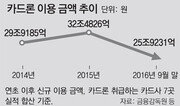 퇴사하고 4년 전 식당을 연 박모 씨(42)는 최근 자금이 필요해 카드론(장기카드대출)으로 500만 원을 대출받았다. 박 씨는 “급하게 돈이 필요해 무서류 대출을 알아보니 만만한 게 카드론이었다”며 “연 19.9%로 금리가 높았지만 급하니까 일단 쓰고 빨리 갚아야겠다고 생각했다”고 말했다. 경기 침체에 살림이 팍팍해진 서민들이 카드론, 보험계약대출(약관대출), ‘무이자 이벤트’ 대출 등 ‘급전대출’로 몰리고 있다. 이 대출들은 손쉽게 이용할 수 있지만 금리가 상대적으로 높아 부담이 크다. 장기적으로는 가계부채의 질을 악화시킬 수 있다는 우려가 나온다. 15일 카드업계에 따르면 올해(1∼9월) 카드사 7곳의 카드론 이용 금액(신규 취급액)은 25조9231억 원으로 지난해 같은 기간(23조9585억 원)보다 약 2조 원 늘었다. 연간 카드론 이용 금액은 2014년 29조9185억 원, 2015년 32조4826억 원으로 증가세를 보이고 있다. 최근 시중은행들이 ‘가계대출 조이기’에 나서면서 은행 문턱을 넘기 어려워진 자영업자들이 특히 카드론을 많이 이용한 것으로 풀이된다. A신용카드사가 올 10월 한 달간 카드론 이용자를 연령대 및 성별로 분석한 결과 40대 여성(19%)과 남성(15%)이 가장 많았다. 다음으로 30대와 50대 여성(각각 13%)이 많았다. 이 카드사 관계자는 “여성들이 자영업을 많이 하는 추세가 반영된 걸로 보인다”고 말했다. 보험 계약을 담보로 받는 약관대출도 손쉬운 급전대출 중 하나다. 4년 전에 가입한 저축성보험 계약을 담보로 석 달 전 300만 원을 대출받은 주부 이모 씨(38)는 “친정에 목돈 쓸 일이 생겼는데 여윳돈이 없어서 보험료(해약환급금)를 담보로 별다른 심사 없이 빌려주는 약관대출을 받았다”고 말했다. 보험업계에 따르면 올해 8월 말 현재 생명보험사와 손해보험사의 약관대출 잔액은 51조7580억 원으로 1년 만에 약 2조6700억 원 늘었다. B보험사 관계자는 “올해 약관대출 이용자의 67%가 여성이고 40, 50대가 71%였다”며 “주부 등 여성들이 보험에 많이 가입하는 특징이 대출에도 그대로 반영됐다”고 설명했다. 대부업체와 저축은행들의 ‘무이자 30일 이벤트’ 대출 역시 급전이 필요한 서민들을 타깃으로 한다. 더불어민주당 이학영 의원실에 따르면 2014년부터 올 6월까지 이를 이용한 대출 건수와 금액은 각각 48만7909건, 1조6769억 원에 이른다. 하지만 이렇게 받은 대출을 30일 이내에 갚은 건수는 전체의 5%에 불과했다. 기한 내 갚지 못하면 고금리 대출로 전환되는 미끼 상품이라는 비난 여론에도 일부 대부업체는 여전히 이 같은 이벤트를 진행하고 있다. 가맹점 수수료율 인하, 저금리 기조 등으로 수익성이 악화된 카드사와 보험사들은 상대적으로 높은 금리를 받을 수 있는 카드론이나 약관대출 영업을 인터넷 및 모바일로 확대하고 있다. 여신금융협회에 따르면 카드사들의 카드론 신용등급별 평균금리는 9.15∼20.57%에 이른다. 생명보험사들의 약관대출 금리도 2%대 후반에서 9%대 후반 사이다. 김상진 하나금융경영연구소 수석연구원은 “카드론 등의 생계형 대출 규모가 아직 크지 않아 염려할 단계는 아니지만 이 같은 상황이 계속되면 가계부채 리스크의 한 요소가 될 수 있어 관리가 필요하다”고 지적했다.주애진 jaj@donga.com·김성모 기자}