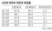 서울 상위권대 철학과 학생 A 씨는 최근 “인문계열은 취업이 잘 안된다는 말을 너무 많이 들었다”며 “의대에 지원하려고 올해 입학하자마자 바로 재수를 준비했다”고 말했다. A 씨의 걱정처럼 지난해 대학과 대학원 등 고등교육기관 졸업자 중 인문계열 취업률이 57.6%로 가장 낮은 것으로 조사됐다. ‘문송합니다(문과라서 죄송합니다)’라는 말이 현실인 셈이다. 반면 의약계열(82.2%)과 공학계열(72.8%) 취업률은 훨씬 높았다. 교육부와 한국교육개발원이 ‘2015년 고등교육기관 졸업자 취업통계조사’ 결과를 25일 발표했다. 2014년 8월과 2015년 2월 대학, 전문대, 교육대, 산업대, 각종 학교, 기능대, 일반대학원 졸업자 57만6023명의 취업률(지난해 12월 31일 기준)을 조사했다. 지난해 취업률은 67.5%로 전년보다 0.5%포인트 증가했다. 취업률은 2011년 67.6%, 2012년 68.1%로 상승하다 2013년 67.4%, 2014년 67.0%로 떨어졌고 지난해부터 소폭 올라가는 중이다. 특히 전문대 졸업자의 경우 69.5%로 2011년(67.8%) 이래 가장 높았다. 반면 4년제 대학은 64.4%로 2013년부터 3년째 하락세를 이어갔다. 인문계열 취업률은 전년(57.3%)보다 0.3%포인트 올라갔지만 전체 7개 계열 중 가장 낮았다. 반면 의약계열 취업률은 전년(80.8%)보다도 1.4%포인트 높아졌고 1위를 유지했다. 인문계열 외에 예체능계열(61.9%) 자연계열(63.9%) 사회계열(64.3%) 취업률이 평균보다 낮았다. 의약계열과 공학계열, 교육계열(68.6%)은 평균보다 높았다. 의약계열에서 의료 분야는 취업률이 91.0%에 달했다. 상위권 고3과 재수생들이 대부분 의대에 지원하길 희망하는 이유다. 남성은 의료(93.5%), 여성은 약학(87.9%) 분야 취업률이 높았다. 전문대와 4년제 대학 간 취업률 격차는 지난해 5.1%포인트(전문대 69.5%, 4년제대 64.4%)로 3년 연속 벌어졌다. 최예나 기자 yena@donga.com}