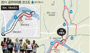 ‘가을을 달리자 무공해 청정코스를 달리자.’ 본격적인 마라톤의 계절을 맞아 2일 충남 공주시에서 동아일보 2011 공주마라톤(충청남도 공주시 동아일보 공동 주최)이 열린다. 지난해까지 백제마라톤으로 열리다 올해부터 공주마라톤으로 새롭게 변신했다. 풀코스와 하프코스에 10km 단축마라톤, 5km 건강마라톤도 열려 온 가족이 함께 출전할 수 있다. 백제의 정취가 배어 있는 공주 코스는 금강을 따라 달리는 무공해 청정 코스다. 백제큰길, 무령왕릉, 공산성에서 700년 백제의 역사를 느낄 수 있다. 42.195km 풀코스는 백제대교를 지나 27.5km 지점부터 30km까지 완만한 오르막이 있을 뿐 대부분 평탄해 마스터스 마라토너들이 달리기에 적합하다. 30km 이후 골인 지점인 공주시민운동장까지 내리막이라 쉽게 레이스를 펼칠 수 있다. 하지만 평탄하다고 무리하면 안 된다. 가볍게 달리겠다는 마음가짐이 중요하다. 마라톤은 완주가 목표이지만 몸에 이상증후가 나타날 땐 과감히 포기해야 한다. 힘들 땐 가볍게 걷다가 다시 달리는 ‘워크 브레이크(Walk-Break)’ 주법을 사용하는 것도 완주에 도움이 된다. 마라톤이라고 해서 처음부터 끝까지 달려야 한다는 생각을 버려야 한다. 힘들면 쉬었다 달리자. 2일 기온은 섭씨 9도에서 18도로 예상된다. 일교차가 심해 출발하기 전과 후의 복장에 신경을 써야 한다. 쌀쌀하다고 너무 따뜻하게 입으면 달리다가 옷을 벗어야 하는 상황이 발생한다. 첨단 소재로 몸을 보온하면서도 더울 때 땀을 잘 발산하는 마라톤복을 입는 게 레이스에 도움이 된다. 공주마라톤은 공주와 부여에서 열리는 제52회 백제문화제(1∼9일) 기간에 개최돼 가족 나들이의 기회로 삼을 수 있다. 아빠는 달리고 엄마는 아이들과 백제의 삶을 느낄 수 있는 문화 탐방을 하면 좋은 역사 공부가 된다. 한편 이날 오전 9시부터 오후 2시까지 공주시내 일부 구간의 교통이 통제된다.양종구 기자 yjongk@donga.com}