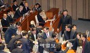 여야는 1일 오전 6시 4분 본회의를 열고 342조 원 규모의 올해 예산안을 통과시켰다. 예산안을 둘러싼 여야의 막판 충돌은 연례행사지만 해를 넘겨 예산안을 처리한 것은 헌정사상 처음이다. 여야는 전날 오후 예산안의 구체적인 금액까지 모두 합의하고도 제주해군기지 예산에 어떤 부대의견을 붙일지를 두고 밤을 새우며 싸우는 볼썽사나운 모습을 연출했다. 여야 원내대표는 강창희 국회의장 주재로 릴레이 협상을 4차례 벌였고 1일 오전 4시경 ‘70일 이내에 부대의견에 포함된 세 가지 조건을 이행하고 국회에 보고한 뒤 예산을 집행한다’는 문구를 추가하는 데 합의했다. 조건은 △군항 중심으로 운영될 것이란 우려 불식 △15만 t급 크루즈 선박의 입항 가능성 철저 검증 △항만관제권, 항만시설 유지·보수비용 등에 대한 협정서 체결이다. 여야는 이후 본회의를 열어 예산안을 통과시켰으나 합의처리임에도 41명이 반대, 30명이 기권하는 등 여진이 적지 않았다. 찬성은 202명이었다. 새누리당은 야당이 원내대표끼리 합의한 부대의견을 번복해 예산안 처리가 늦어졌다고 비판했고, 민주통합당은 여당이 ‘박근혜표 예산’을 일방적으로 반영한 것이 근본 원인이라며 ‘네 탓’ 공방을 벌였다. 예산안이 늦게 통과되면 재정 집행이 늦어져 정부 지원이 시급한 서민들이 피해를 본다. 헌법은 이를 막기 위해 국회가 매년 12월 2일까지 예산안을 처리하도록 했다. 하지만 국회는 10년째 법정기한을 어겼을 뿐 아니라 민생과 관련이 적은 제주해군기지 논란으로 해를 넘기는 초유의 사태를 빚었다. 이 과정에서 여야는 11월 22일, 12월 2일, 12월 28일 합의처리 약속을 세 차례나 어겼다. ‘밥값을 하겠다’던 19대 국회의 약속이 허언으로 돌아간 것은 이번만이 아니다. 여야는 지난해 8월 말까지 국정감사를 마치고 정기국회에서는 예산안과 법률안 심사에 집중하겠다며 법률까지 만들었다. 하지만 방탄국회 논란과 공방 속에 약속은 잊혀졌고 국감은 예년처럼 10월에 열렸다. 새누리당은 지난해 6월 불체포특권 포기 등 6대 특권 폐지 방안을 발표했고 민주당도 비슷한 방안을 내놨다. 여야는 11월 1일까지 관련 법안을 통과시키겠다고 약속했지만 법안은 아직까지 국회에서 잠을 자고 있다.장원재 기자 peacechaos@donga.com}