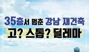 #1.‘35층서 멈춘’ 강남 재건축 고? 스톱? 딜레마#2.서울시가 2일 최고 50층 높이의 잠실주공 5단지 아파트 재건축 계획안에 대해보류 판정을 내렸습니다. “아파트 최고 층수를 35층으로 정한 ‘2030 서울도시계획’에 부합하지 않는다.”- 서울시 도시계획위원회#3.층수를 40~50층으로 높여 사업성을 키우려던 재건축 조합들엔 비상이 걸렸습니다.올해 관리처분인가(철거 이전 최종인가)를 신청하지 못하면 내년에 부활하는 초과이익환수제의 적용 대상이 되기 때문입니다.※초과이익환수제 : 재건축으로 이익이 과다하게 발생하면 정부가 초과이익을 세금으로 환수하는 제도.#4.재건축 조합이 서울시의 요구대로 기존 계획안을 수정하려면 시간이 필요합니다.“기존 계획안(최고 49층)을 고치려면 다시 주민 동의를 받아야 하는 등 사업이 늦춰질 수밖에 없어 고민이 크다.”- 강남구 대치동 은마아파트 재건축 조합 관계자 #5.강남권 재건축 아파트들이 ‘35층 제한’의 영향으로 가격이 떨어지고 급매물이 늘어나는 등 시장 변화가 클 거라는 전망이 나오는데요.“이번 심의 결과로 향후 시장 가격이 전반적으로 더 떨어질 가능성이 커졌다.”- 부동산 전문가 박상언 유엔알컨설팅 대표#6.반면 서울시의 35층 제한을 받아들인 재건축 단지들은 잇달아 승인을 받으면서 사업 진행에 속도를 내고 있습니다. 서초구 반포동 신반포 14차 아파트는 최근 최고 층수를 34층으로 하는 계획안을 제출해 용적률 심의를 통과했죠. 50층을 고수하던 반포주공1단지도 최고 층수를 35층으로 낮춰 지난달 사실상 재건축 심의를 통과했습니다. #7.서울시는 9일 35층 이상으로 재건축 계획을 세우고 있는강남구 대치동 은마아파트와 압구정동 현대아파트에 대해“35층 제한 방침에 변함없다”며 불가(不可)입장을 재확인했습니다. #8.“(최고 층수를 35층으로 제한해도) 아파트 단지의 평균 층수는 15층에 불과해 다양한 층수 구성이 얼마든지 가능하다.”“24층인 싱가포르 ‘인터레이스’ 단지나 서울 자곡동 강남힐스테이트(18층)처럼 초고층이 아니라도 우수한 디자인을 구현할 수 있다.”-김학진 서울시 도시계획국장원본 | 황태호 · 강성휘 기자기획·제작 | 이유종 기자 · 이고은 인턴}