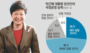 박근혜 당선인이 대통령으로서 일을 잘할 것이라는 의견이 73.4%로 부정적 의견(20.1%)을 크게 웃도는 것으로 나타났다. 대선 당시 박 당선인의 득표율(51.6%)보다 21.8%포인트 높은 것이다. 이는 동아일보와 채널A가 지난해 12월 29일 리서치앤리서치에 의뢰한 신년 여론조사 결과다. 민주통합당을 지지한다고 밝힌 응답자 중에서도 긍정 예측(53.5%)이 부정 예측(40.3%)보다 높아 박 당선인을 지지하지 않은 층에서도 박 당선인에 대한 기대감이 적지 않은 것으로 나타났다.‘박근혜 정부’의 최대 중점 과제로는 응답자의 28.6%가 경제성장을 꼽았다. 이어 양극화 해소(16.5%), 경제민주화(14.1%), 국민통합(11.5%) 순이었다. 전체 응답자의 절반 이상인 59.2%가 경제 문제 해결을 차기 정부의 핵심 과제로 꼽은 셈이다.박 당선인의 핵심 공약 중 하나인 ‘중산층 70% 시대’에 대해서는 50.9%가 ‘실현될 것이다’라고 답한 반면 44.2%는 ‘실현될 것 같지 않다’라고 밝혔다. 절반 가까이가 실현 가능성이 낮다고 본 것이다. 이는 현재 자신이 중산층이라고 밝힌 응답자가 28.0%에 그친 점과 무관치 않아 보인다. 이재명 기자 egija@donga.com}