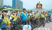 행정자치부와 한국자전거단체협의회는 30일 서울 광화문광장에서 ‘올 여름휴가 자전거로 국내여행 가기’ 홍보캠페인을 펼쳤다. 국내 자전거 여행을 통해 메르스(MERS·중동호흡기질환)로 침체됐던 경기를 살리고 본인 건강도 챙기는 ‘1석 2조’의 휴가를 보내자고 제안한 것이다. 국토종주 자전거길은 한강자전거길 등 10개 구간에 총 연장 1543km가 마련돼 있다. 행자부는 자전거 행복 나눔 홈페이지(www.bike.go.kr)를 통해 자전거길 노선과 주변 관광 정보를 제공하고 있으며, 자전거 여행 인증샷을 홈페이지에 올린 100명에게 국토종주 인증수첩을 선물할 예정이다. 황인찬 기자 hic@donga.com}
