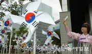 광복 70주년을 앞두고 서울 광화문, 청와대 일대가 ‘태극기 바람개비’로 수를 놓았다. 행정자치부는 5일 광화문 앞 인도, 청와대 사랑채 앞 분수대, 대한민국역사박물관 정문 앞, 정부서울청사 내에 태극기 문양이 들어간 바람개비 약 670개를 설치했다고 밝혔다. 바람개비의 높이는 1.5m, 바람개비 날개 지름은 41㎝다. 이달 말까지 운영되는 태극기 바람개비는 ‘광복 70주년, 태극기 사랑 70일 운동’의 일환으로 설치됐다. 행자부는 “국가상징인 태극기에 대한 국민들의 친밀감이 더욱 높아지기를 기대한다”고 말했다.황인찬 기자 hic@donga.com}