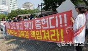 대전의 봉산초등학교 학부모들이 학교급식이 급식의 질과 위생 등에서 총체적으로 부실하다며 영양사와 조리사의 전원 교체를 요구하고 나섰다. 학부모들은 여러 번의 개선 건의를 했지만 시정이 이뤄지지 않았다며 담당 공무원의 처벌도 요구했다. 이 학교 학부모들로 구성된 급식비상대책위원회는 29일 이 학교 5, 6학년 230명을 대상으로 한 설문조사에서 밥과 국, 반찬에서 머리카락, 휴지, 플라스틱 조각 등이 나왔다는 응답이 있었다고 주장했다. 영양교사 입회하에 시료를 보내 검사한 결과 세균도 기준치를 크게 상회했다는 것. 배식을 했던 학부모들이 찍었다면서 비대위가 제시한 급식 사진을 보면 반찬이 김치와 호박 각 한 조각이 전부이고 국은 거의 국물만 있을 정도로 부실한 경우도 있었다. 학부모들이 이 사진들을 소셜네트워크서비스(SNS)에 올리자 “잔반인 줄 알았다”, “그 학교 교장 교감은 집에서 자식이나 손자에게 그렇게 먹이냐” 등 교육당국을 비아냥거리는 글들이 쇄도했다. 한 학부모는 “이런 급식 부실이 오래 계속됐고 지난해 4월 학부모 민원으로 현장점검을 나온 서부교육청의 담당 공무원이 ‘아이들이 식중독이 안 걸린 게 다행’이라고 말할 정도로 문제점을 시인했다”며 “하지만 그 다음에 아무런 시정 조치를 취하지 않았고 나중에 알고 보니 시 교육청에 보고도 하지 않은 것으로 밝혀졌다”고 주장했다. 학부모들은 일부 조리원이 학생들에게 비인격적인 막말과 욕설을 상습적으로 해왔다고 주장했다. 이 학교에서는 내달 1일자로 병휴직을 낸 영양교사와 조리원들 사이에 오랫동안 갈등이 심각했지만 교육당국이 문제를 방치하면서 급식이 부실해졌다는 주장도 나오고 있다. 비대위는 시교육청 앞에서 집회를 벌이는 한편 29일에는 설동호 시 교육감을 면담하고 해결을 촉구했다. 비대위 관계자는 “학부모들의 민원이 계속됐는데도 시 교육청 측은 이달 중순에서야 직접 조사를 나왔다”며 “교육감이 아래에 미루지 않고 직접 해결에 나서야 한다”고 말했다. 시 교육청은 서부교육지원청이 자체적으로 진상조사위원회를 구성해 조사하고 있다며 조사 결과가 나오면 이를 토대로 인사 조치를 하거나 급식개선 대책을 마련해 시행하겠다고 밝혔다. 한편 시교육감 비서실은 교육감 면담을 요청하러온 학부모들을 저지하기 위해 비서실 문을 잠가버려 비난을 샀다. 비서실은 2월에도 교육감 면담 요구를 하러온 급식업자들을 막기 위해 같은 행동을 했었다. 지명훈 기자 mhjee@donga.com}
