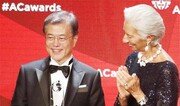 “이 상을 지난겨울 내내 추운 광장에서 촛불을 들었던 국민께 바치고 싶다.” 문재인 대통령은 19일(현지 시간) 미국 뉴욕 인트레피드 해양항공우주박물관에서 애틀랜틱 카운슬이 주는 ‘2017 세계시민상’을 수상한 뒤 소감을 이렇게 밝혔다. 문 대통령은 “나는 촛불정신을 계승하라는 국민의 열망을 담고 대통령이 됐다”고 자신을 소개한 뒤 “평화의 힘을 전 세계에 보여주고 세계 민주주의 위기에 희망을 제시한 ‘촛불 시민’은 노벨평화상을 받을 자격이 있다”고 강조했다. 세계시민상은 국제협력·분쟁해결을 연구하는 워싱턴의 대표적인 싱크탱크 중 하나인 애틀랜틱 카운슬이 만든 상으로 세계 시민의식 구현과 민주주의 발전에 기여한 인사에게 수여되고 있다. 올해는 문 대통령과 함께 쥐스탱 트뤼도 캐나다 총리, 중국 출신 피아니스트 랑랑 씨가 받았다. 문 대통령은 “대한민국 국민은 ‘민주공화국의 모든 권력은 국민으로부터 나온다’는 명제를 전 세계에 보여줬고 나에게는 대통령도 국민의 한 사람이란 사실을 말해줬다”며 “한반도 평화를 이루고 나서 대한민국이 이룩한 평화의 역사를 말씀드릴 시간이 반드시 올 것”이라며 북핵 문제 해결 의지를 드러냈다. 이날 시상식에서는 지난해 한국의 촛불시위 장면과 문 대통령 취임 100일의 주요 장면이 담긴 영상이 소개됐다. 문 대통령은 이날 함께 수상한 트뤼도 총리와 별도 회의장에서 환담을 갖고 북핵 문제를 평화적 방식으로 근원적 포괄적으로 해결하는 데 힘을 모으기로 했다고 박수현 청와대 대변인이 밝혔다.유근형 기자 noel@donga.com}