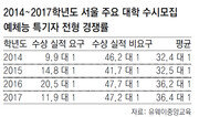 대학입학시험 예체능 특기자 전형 중 대회 수상 실적을 요구하는 전형은 그렇지 않은 전형보다 경쟁률이 최대 5분의 1 수준인 것으로 1일 조사됐다. 특히 체육 특기자 전형으로 뽑는 종목의 67%는 경쟁률이 1 대 1 이하였다. 최순실 씨 딸 정유라 씨가 전공한 승마처럼 돈이 많이 들고 선수가 별로 없는 종목은 대학에 쉽게 들어갈 수 있다는 뜻이다.○ 경쟁자 없어 쉽게 입학 본보는 유웨이중앙교육과 2014∼2017학년도 서울 주요 대학 수시모집 예체능 특기자 전형의 경쟁률을 분석했다. 평균 경쟁률은 2014학년도 32.4 대 1(37개 전형), 2015학년도 32.5 대 1(44개), 2016학년도 36.2 대 1(26개), 2017학년도 36.4 대 1(49개)로 비슷했다. 그러나 수상 실적을 요구하는 전형과 아닌 것으로 나누면 경쟁률 격차가 극심하게 벌어졌다. 모집요강 지원자격에 ‘3년 이내 국제 또는 전국 규모 대회에서 개인종목 3위 이내 입상자’ 같은 방식으로 수상 실적을 요구하는 전형의 평균 경쟁률은 2014학년도 9.9 대 1(14개), 2015학년도 14.8 대 1(15개), 2016학년도 20.5 대 1(11개), 2017학년도 11.9 대 1(15개)이었다. 비요구 전형 경쟁률(각각 46.2 대 1, 41.7 대 1, 47.7 대 1, 47.2 대 1)보다 아주 낮았다. 체육 특기자 전형은 매년 1개씩을 제외하고 모두 수상 실적을 요구했다. 이에 평균 경쟁률이 다른 전형보다 매우 낮은 편이다. 2014∼2017학년도에 각각 3.0 대 1, 3.0 대 1, 20.7 대 1, 6.1 대 1이었다. 예능 특기자 전형 평균 경쟁률(41.9 대 1, 41.2 대 1, 44.4 대 1, 44.2 대 1)보다 현저히 낮은 셈이다. 전국 대학의 체육 특기자 전형 경쟁률을 모두 따져 봐도 높지 않다. 국회 교육문화체육관광위원회 김병욱 의원(더불어민주당)이 교육부로부터 받은 ‘2013∼2016학년도 체육 특기자 선발현황’에 따르면 평균 경쟁률은 각각 1.6 대 1, 2.3 대 1, 2.5 대 1, 3.2 대 1이었다. 2017학년도에 서울대 고려대 연세대 등 4년제 주요 대학(33개)의 수시 경쟁률 평균이 17.43 대 1인 것을 감안하면 입학이 쉬운 편이다. 특정 체육 종목은 선수가 많지 않아 지원만 하면 합격하는 사례도 있다. 2014년 국회 교문위 한선교 의원(새누리당)이 공개한 자료에 따르면 2012∼2014학년도 3년간 62개 대학의 체육 특기자 전형 1529개 종목 중 경쟁률 1 대 1 이하가 67.5%(1032개)였다. 승마나 요트처럼 아무나 할 수 없는 스포츠이거나 육상, 씨름처럼 비선호로 선수가 별로 없는 종목이다. 정 씨가 입학한 2015학년도에 승마로 대학에 지원한 수험생은 11개 대학에 58명이었다. 계명대 중앙대 삼육대에는 지원자가 1명씩, 성신여대 연세대에는 2명씩이었다. 교육부는 최종 합격자 수는 공개하지 않았다.○ 끊이지 않는 체육 특기자 비리 체육 특기자들의 입학 비리는 반복돼 온 문제다. 김대희 한국스포츠개발원 박사는 “각 대학이 전형 전 합격자를 내정하는 스카우트 제도가 비리의 근본 원인”이라고 말했다. △평가가 실기와 면접 위주라 주관적이고 △감독의 권력 때문에 비리가 잘 드러나지 않고 △관리가 교육부 대입제도와 인성체육예술교육과로 분리돼 감독이 부실한 점도 지적했다. 한국대학교육협의회는 체육 특기자 선발의 객관성을 강화하려 2019학년도부터 각 대학이 모집요강에 선발 인원을 종목과 포지션별로 명시하게 했다. 대회 수가 많은 종목의 단체가 대입 관계자에게 각 대회의 참가팀 수와 인원 정보를 제공하게 했다. 문화체육관광부는 주요 대회 경기 동영상을 볼 수 있는 홈페이지를 만들어 대입 관계자가 학생의 기량을 확인하도록 했다. 교육부는 정 씨에게 입학 특혜를 줬다는 의혹을 받는 이화여대 특별감사를 계기로 체육 특기자 선발이 많은 대학에도 비슷한 문제가 있었는지 조사할 방침이다.최예나 기자 yena@donga.com}
