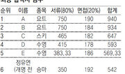 최순실 씨 딸 정유라 씨가 2014년 9, 10월에 진행된 이화여대 체육특기자전형에서 서류 평가 점수는 하위권이었는데도 면접에서 1등을 해 6명을 선발한 이 전형에서 6등으로 ‘턱걸이’ 합격한 사실이 3일 확인됐다. 정 씨의 서류 점수는 350점으로 1등으로 합격한 A 씨 점수(750점)의 절반도 안 됐다. 본보가 입수한 이화여대의 ‘2015학년도 체육특기자전형 합격자 서류·면접 평가 결과’에 따르면 당시 체육특기자전형에는 111명이 지원했다. ‘서류(수상 실적) 100%’로 뽑는 1단계에서 22명이 통과했는데 1명이 포기했고 2단계에서 ‘서류 80%+면접 20%’로 최종 합격자가 가려졌다. 정 씨보다 서류 점수가 50점가량 높았던 1단계 합격자 중 면접에서 낮은 점수를 받아 떨어진 사례가 있는 것으로 알려졌다. 정 씨의 2단계 총점은 542점으로 1등 A 씨(940점)와 무려 398점 차이가 난다. 이화여대는 “정 씨는 우수한 성적으로 합격했다”고 밝혀 왔다. 당시 입학 업무를 맡았던 이화여대 관계자 B 씨는 “국내 대회 4, 5개에서 상 타는 것보다 올림픽, 아시아경기, 세계선수권대회에서 한 번이라도 3위 이내로 입상하면 면접을 0점 받아도 합격할 수준으로 점수를 높게 준다”며 “실적은 아무리 많이 제출해도 상위 점수 3개만 반영한다”고 말했다. 이는 모집요강에는 나오지 않은 내부 사정 지침이다. 이화여대는 모집요강에 ‘서류는 2011년 9월 16일∼2014년 9월 15일 사이 수상 내용만 평가한다’고 밝혔다. 정 씨는 30개 이상의 실적을 제출했지만 올림픽이나 아시아경기, 세계선수권대회에 해당하는 건 없었다. 이화여대 관계자는 “A 씨는 세계선수권대회에서 입상해 서류 점수가 월등히 높았던 것”이라며 “국내 대회만 출전한 지원자들의 점수는 모두 비슷하다”고 말했다. 정 씨가 합격권에 든 건 면접 점수(192점) 덕분이었다. 그러나 합격자 6명의 점수도 비슷했다. 정 씨 외에 190점(A 씨), 186점, 184점, 182점, 178점 순이었다. B 씨는 “서류가 당락에 큰 영향이 있지 면접은 점수가 비슷해 크게 뒤바뀌는 건 없다”고 했다. 그러나 정 씨보다 서류에서 높은 점수를 받은 지원자가 면접 때문에 떨어진 것을 감안하면, 이화여대가 합격권 밖의 정 씨에게 면접 점수를 몰아 주기한 의혹이 제기된다. 교육부 관계자는 “정 씨가 면접에서 특혜를 받았는지는 감사 중이라 밝힐 수 없다”고 말했다. 정 씨 사례라고 밝히지 않고 서울 주요 사립대 입학사정관에게 정 씨 등 합격자들 점수를 알려줬더니 “현실적으로 6등(정 씨)이 합격할 가능성은 떨어진다”고 말했다.최예나 yena@donga.com·노지원 기자}