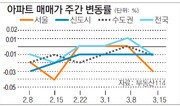 초대형 프로젝트인 용산 국제업무지구 개발사업이 채무불이행(디폴트) 사태를 맞으면서 부동산시장에 미칠 영향에 관심이 쏠리고 있다. 특히 서울 아파트 값이 최근 긴 하락세를 멈추고 재건축 단지를 중심으로 반등하는 등 상승 채비를 하던 터에 악재가 터져 다시 수요자 심리가 얼어붙지 않을까 우려가 일고 있다. 지난주 아파트 매매시장은 서울이 ―0.03%로 하락세로 돌아섰으며 신도시(―0.01%)와 수도권(―0.01%)에서도 역시 약세가 이어졌다. 특히 용산구 아파트 매매가격은 전주에 비해 0.12% 하락해 서울을 비롯한 수도권 전역에서 가장 큰 하락폭을 기록했다. 전세시장은 서울(0.04%), 신도시(0.02%), 수도권(0.01%) 모두 꾸준한 상승세를 이어갔다. 다만 새 학기가 시작돼 학군 수요가 잠잠해지면서 서초(―0.05%), 양천(―0.01%) 등의 전세금은 소폭 떨어졌다.장윤정 기자 yunjung@donga.com}