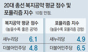 4·13총선을 앞두고 새누리당 더불어민주당 국민의당이 앞다퉈 복지 공약을 발표하고 있지만 현실성이 떨어지고 포퓰리즘 경향이 강한 ‘날림 공약’이 꽤 있는 것으로 파악됐다. 동아일보는 경제, 복지, 정책 분야 전문가 20인 설문조사를 통해 3당이 최근 발표한 복지 분야 공약 15개의 실현성과 지속성 등을 분석했다. 그 결과 새누리당의 6개 공약은 10점 만점에 평균 6.1점, 더민주당의 8개 공약은 4.8점, 국민의당의 1개 공약은 4.4점을 받았다. 특히 3당 공약에 대한 포퓰리즘 경향을 측정한 결과 더민주당의 포퓰리즘 지수가 가장 높은 6.5점을 기록했다. 국민의당은 5.3점, 새누리당은 4.9점으로 집계됐다. 전문가들은 더민주당의 ‘청년 취업활동비 월 60만 원씩 6개월 지급’을 가장 문제가 많은 공약으로 평가했다. 15개 공약 중 최하점(3.7점)을 받았는데 현재 서울시와 성남시가 논란 속에서도 각각 강행 의사를 밝히고 있는 ‘청년수당’과 ‘청년배당’의 확장판이라는 지적을 듣고 있다. 재원 마련이 불투명한 더민주당의 ‘육아휴직급여 현 통상임금 40%에서 100%로 인상’ 공약도 4.2점의 나쁜 평가를 받았다, 새누리당 공약 중에는 ‘중저신용자 대상 1조4000억 원 대출’이 5.3점으로 가장 점수가 낮았다. 반면 새누리당의 ‘경력단절 여성 국민연금 보험료 추후 납부 허용’은 15개 공약 중 가장 높은 7.2점을 받았으며 더민주당에선 ‘남성 출산휴가 확대’(5.9점)가 가장 좋은 점수를 얻었다. 이봉주 서울대 사회복지학과 교수는 “정치권이 누리과정 등 복지비용으로 빚어진 사회적 혼란에 눈감고 ‘표 복지’의 유혹에 시달리고 있다”며 “가장 시급한 복지부터 단계적으로 시행해야 한다”고 말했다. 유근형 noel@donga.com·조건희 기자}