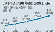 지난해 65세 이상 고령자가 사용한 건강보험 진료비가 20조 원을 돌파했다. 1인당 진료비는 다른 연령대의 3배가 넘었다. 하지만 고령자들의 소득과 재산 분배율은 경제협력개발기구(OECD) 회원국 중 최하위권이었다. 건강보험심사평가원은 지난해 심사한 건강보험 진료비 58조170억 원 중 65세 이상이 사용한 진료비는 21조3615억 원(36.8%)이었다고 24일 밝혔다. 건강보험 적용자 중 65세 이상의 인구수는 12.3%에 불과했지만 1인당 진료비는 343만 원으로 전 연령대(108만 원)보다 훨씬 많았다. 고령자 진료비의 증가세는 다른 연령대보다 가파르다. 전체 건강보험 진료비는 2011년 46조760억 원에서 지난해 25.9% 올랐지만 고령자 진료비는 같은 기간 44% 올랐다. 심평원은 고령자 수 자체가 증가할 뿐 아니라 건강에 대한 관심도 늘어나기 때문에 고령자 진료비의 비중이 앞으로 계속 늘 것으로 내다봤다. 고령자들이 병원에 입원한 가장 큰 이유는 백내장(19만 명), 폐렴(8만 명), 뇌경색(8만 명)이었고 외래진료 사유는 고혈압(242만 명), 치은염·치주질환(197만 명), 급성기관지염(174만 명) 순으로 많았다. 전 연령대에서는 폐렴 입원 환자와 급성기관지염 외래 환자가 각각 가장 많았다. 고령자의 병원비 부담은 해마다 늘고 있지만 주머니 사정은 선진국에 비해 좋지 않다. 여유진 한국보건사회연구원 연구위원이 OECD 34개 회원국 중 미국 포르투갈 슬로바키아 등 20개국의 연령별 재산 분배율을 분석한 결과 65∼74세 한국 고령자의 재산은 전 연령대 평균을 100으로 놓고 볼 때 절반 이하인 45였다. 75세 이상 독신은 33.8로 극히 낮았다. 미국은 65∼74세가 100, 75세 이상이 105였다. 한국 고령자는 소득을 기준으로 한 노인빈곤율 통계에서 수년째 OECD 1위를 차지하고 있다. ‘고령자들이 부동산은 많이 갖고 있다’는 통념과 달리 소득도 재산도 적다는 얘기다. 조건희 becom@donga.com·임현석 기자}