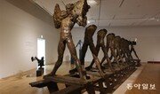 “내가 마흔을 넘길 수 있을까.” 조각가 류인(1956∼1999)은 이따금 이렇게 혼잣말을 했다. 대학생 시절 사진 속 작품 옆에 선 그는 왜소하고 마른 체구가 마치 소년 같다. 작업 노트엔 진찰 약속과 복용해야 할 약 목록이 적혀 있다. 어릴 때부터 병약했던 그는 요절할 운명을 예감한 듯 짧은 기간에 많은 작품을 남겼다. 15년가량의 작업 세계를 한눈에 볼 수 있는 전시 ‘류인―파란에서 부활로’가 서울 송파구 국민체육진흥공단 소마미술관(관장 민도평)에서 열리고 있다. 작가 사후 미술관에서 회고전이 열리는 것은 이번이 처음이다. 류인의 작품과 자료 100여 점을 소개하는 전시는 처녀작인 ‘자소상’으로 시작한다. 공모전 수상작인 ‘여인입상’을 비롯해 설치작품 ‘흙―난지도’ 등 총 4점이 작가 사후 최초로 공개됐다. 또 전시장 밖에 설치된 ‘부활―그 정서적 자질’은 서울 예술의전당이 소장하고 있던 작품으로 처음으로 자리를 옮겨 다른 작품들과 함께 전시된다. 두 번째 공간에서 보이는 ‘파란 I’(1984년)과 ‘입산’ ‘하산’ 등의 작품은 작가가 대학원 재학 시절 제작한 작품이다. 홍익대 조소과를 나온 류인은 동대학원에 입학하기 전 네 번이나 재수를 했다고 한다. 이 시기 고민 끝에 나온 작품들로, 초기 단정한 신체 조각에서 벗어난 모습을 확인할 수 있다. 신체의 일부분만 표현하거나 인체의 비율을 왜곡해 자신만의 표현을 찾아가는 과정이 드러난다. ‘급행열차―시대의 변’은 류인을 미술계에 강렬하게 각인시킨 화제작이다. 고정된 틀에서 벗어나려는 듯 몸부림치는 신체들이 기찻길 위에 줄지어 서 있어 시선을 사로잡는다. ‘급행열차’와 함께 전시된 ‘푸짐한 식사’는 쟁반 위에 뚜껑이 열린 듯 표현된 두상을 올려 두어 그로테스크한 분위기를 자아내기도 한다. 정나영 전시학예부장은 “류인은 신체 자체를 사실적으로 묘사하기보다 그것을 생략하고 왜곡하거나 오브제로 대체해 1980, 90년대 사회상을 표현한 작가”라고 설명했다. 마지막에 마련된 아카이브 섹션에서는 류인이 어떤 생각을 갖고 작업했는지를 돌아볼 수 있다. 독일 표현주의 작가인 빌헬름 렘브루크(1881∼1919)를 연구했고, 자코메티나 로댕의 책을 수집한 흔적도 남아 있다. 또 인터뷰 영상을 통해 동료 조각가들이 본 류인의 생전 모습도 가늠해볼 수 있다. 이번 전시는 소마미술관에서 2007년부터 시작한 ‘작가 재조명’ 기획 시리즈의 다섯 번째 전시다. 2007년 ‘김주호, 박한진, 이건용―쉬지 않는 손, 머물지 않는 정신’이 첫 전시였다. 이후 ‘신성희-한순자’(2009년), ‘김차섭, 전수천, 한애규―긴 호흡’(2014년) 등 2인전, 3인전 형식으로 한국 현대미술의 흐름에서 새롭게 조명할 가치가 있는 작가들의 작업을 통해 작가정신과 시대정신을 부각시켜 살폈다. 그러다 2018년부터는 한 작가의 세계관과 작품세계를 보다 깊이 있게 들여다보자는 취지로 개인 회고전으로 전환했다. 그 첫 전시는 ‘황창배―유쾌한 창작의 장막’이었고 두 번째 회고전 작가가 류인이다. 한국 근대미술의 유명 작가인 류경채(1920∼1995)의 아들이기도 한 류인은 1981년 학부를 졸업했다. 1983년 목우회 특선, 1983년 대한민국미술대전 특선을 수상하는 등 일찌감치 주목받았지만 1999년 간경화로 사망했다. 전시는 10월 4일까지. 1000∼3000원. 김민 기자 kimmin@donga.com}