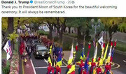 7일 도널드 트럼프 미 대통령의 국빈 방문에는 한미 양국의 소셜네트워크서비스(SNS) 홍보전도 벌어졌다. 25년 만의 미 대통령 국빈 방문인 만큼 백악관과 청와대가 각종 SNS 도구를 이용해 두 정상의 일거수일투족을 일반에 생중계한 것이다. ‘트위터 마니아’인 트럼프 대통령은 이날 일본에서 한국으로 출발하기 전부터 트위터 행진을 벌였다. 이날 오전 6시 반경 “(일본을 떠나) 한국에 갈 준비를 하고 있다. 좋은 젠틀맨(fine gentleman)인 문재인 대통령을 만난다”고 했다. 오산기지에 도착해 평택 ‘캠프 험프리스’에서 장병들과 오찬하는 장면은 “한미 장병들과 식사를 한 것은 내 영광”이라는 제목과 함께 31초의 동영상으로 올렸다. 그러더니 자신의 전용차량인 ‘캐딜락 원’을 타고 청와대에 들어가고 공식 환영식에 참여하는 장면은 무려 3분 40초의 긴 동영상으로 홍보했다. 아예 동영상 제목을 ‘Thank you South Korea(한국 감사합니다)’라고 달았다. 트럼프는 별도의 트위터에 “아름다운 환영식에 감사한다. 영원히 기억할 것”이라고 말했다. 청와대도 뒤지지 않았다. 문 대통령이 캠프 험프리스에서 트럼프 대통령을 맞는 파격을 선보인 순간 박수현 청와대 대변인은 휴대전화로 양국 정상의 모습을 촬영하느라 여념이 없었다. 박 대변인이 찍은 동영상은 실시간으로 청와대 페이스북을 통해 생중계됐다. 청와대는 이날 캠프 험프리스 방문 외에도 확대 정상회담 모두발언, 국빈만찬 건배사를 페이스북을 통해 생중계했다. 한상준 기자 alwaysj@donga.com}
