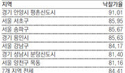 지난달 27일 수원지방법원 경매법정에 나온 경기 용인시 수지구 풍덕천동의 전용 84.6m² 아파트에 응찰자가 54명이나 몰렸다. 감정가 3억5000만 원인 이 아파트는 지난해 12월 한 차례 유찰돼 감정가의 70%(2억4500만 원)에 경매가 시작됐지만 최종 낙찰된 금액은 3억7107만 원이었다. 낙찰가율(감정가 대비 낙찰가)은 106%. 2000년대 중반까지 부동산 가격이 급등했다가 최근 몇 년 새 집값 하락폭이 컸던 7개 지역(버블세븐 지역)의 아파트가 경매시장에서 인기를 되찾고 있다. 10일 부동산태인에 따르면 지난달 버블세븐 아파트 338건의 경매를 분석한 결과 7개 지역 평균 낙찰가율은 84.41%를 나타냈다. 지난해 같은 달에 비해 10.9%포인트 상승한 수치로 2011년 2월 이후 가장 높다. 버블세븐 지역은 2006년 당시 정부가 “부동산 가격에 거품이 많다”고 지목한 서울 강남구, 서초구, 송파구, 양천구 목동, 경기 성남시 분당신도시, 안양시 평촌신도시, 용인시를 일컫는 용어다. 버블세븐 지역은 주거 인프라가 우수한 데다 최근 수도권 아파트의 집값 상승 기조와 맞물려 아파트 가치가 재평가되면서 경매 시장에서도 인기를 끌고 있는 것으로 분석된다. 한편 국토교통부는 지난해 건축허가 면적이 전년보다 11.6% 줄어든 1억2702만4000m²로 조사됐다고 10일 밝혔다. 동(棟) 수로는 2.4% 줄어든 22만6448동이었다. 건축허가 면적을 전산으로 집계한 2009년 이후 4년 만에 처음으로 상승세가 꺾였다.김준일 jikim@donga.com·홍수영 기자}