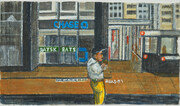 《“뉴욕에 막 도착했을 무렵이에요. 길모퉁이를 지나는데 체이스은행(JP모건체이스)이 눈에 번쩍 띄어 스케치를 해두었죠. 뉴 뮤지엄에서 열린 (독일 개념미술가) 한스 하케의 ‘작가와의 대화’에 갔다가 록펠러 가문이 체이스은행을 인수한 이야기를 들었어요. 호기심이 생겨 헌책방에 가서 록펠러와 뉴욕현대미술관(MoMA)의 관계 등 자세한 이야기를 찾아봤습니다. 그 후 34번가에 있는 체이스은행도 하나 더 그렸고요.”》 때로는 빼곡한 활자나 100마디 말보다 눈앞의 이미지가 더 솔직하다. 글이 진실을 가릴 때도 있다. 미술가 서용선(69)은 몸이 마주한 풍경에서 문자 이전의 이야기를 수집한다. 체이스은행의 시각적 특이함을 포착하고 실마리를 추적해간 것처럼 말이다. 지난해 10월부터 미국 뉴욕 미드타운 일대에 머물다가 온 그를 5일 서울 종로구 올미아트스페이스에서 만났다. 그의 뉴욕 체류가 처음은 아니다. 이전에는 브루클린이나 퀸스같이 뉴욕 외곽에 주로 머물렀다면 이번엔 중산층 이상이 많은 상업지대라는 점이 달랐다. 과거 뉴욕은 짙은 갈색이 두드러졌지만 이번엔 녹색으로 스케치를 시작했다고 그는 설명했다. 스타벅스의 녹색이 강하게 들어왔다고 한다. 이렇게 마주한 풍경을 기록한 그의 드로잉은 올미아트스페이스 ‘종이그림’전에서 볼 수 있다. 5개월 반의 체류 중 록펠러가 그에게 많은 인상을 남긴 듯했다. “뉴욕에 도착하고 처음엔 자화상을 그렸어요. 매일 카페나 공원에서 도시와 사람을 관찰했죠. 두 달쯤 됐을 때 록펠러센터 지하 통로를 발견했는데, 묘하더군요. 추운 겨울에 무료로 따뜻하게 머물 수 있는 몇 안 되는 곳이에요. 주로 흑인이나 남미계 직업 없는 사람들이 모여들지만 경비가 삼엄해서 졸기만 해도 쫓겨나는 제한된 자유의 공간이었죠. 독특한 모델이 많고 그림 그리기 좋아 두 달은 여기서 스케치를 했습니다.” 사람들은 그를 ‘단종(端宗) 화가’나 역사화가로 기억한다. 소설 ‘단종애사(端宗哀史)’처럼 기록되지 않은 역사의 현장을 포착한 작품들로 유명하다. 서울 강남구 갤러리이마주에서 30일까지 열리는 ‘고구려, 산수’전에서도 중국에 남은 고구려 흔적을 그린 작품을 볼 수 있다. 그러나 도시 풍경도 텍스트 이면의 포착되지 않은 것들을 끄집어낸다는 점에서 역사화와 맥락을 같이한다. ‘종이그림’전에서는 각종 포장지를 활용한 콜라주 작품도 눈에 띈다. 작업실 맞은편의 베이커리에서 내주는 빵 포장지나 동그란 입이 달린 우유갑, 매일 먹는 약 껍질이 재료가 됐다. “처음엔 소재나 내구성에 관심이 갔는데, 내 몸을 구성하는 것에 대한 표현이기도 합니다. 어느새 약을 먹지 않으면 1, 2년 내로 삶이 어그러지는, 약이 절대적인 조건이 돼버렸어요. 이런 소재들은 단순한 조형성을 넘어 삶의 본질에 관한 이미지라는 생각을 하게 됐지요.” 그림은 단순한 묘사가 아니라 몸을 둘러싼 풍경과 인식을 복합적으로 담는 과정이라는 이야기로 들렸다. 이번 뉴욕 체류에 대해서도 그는 “지역마다 다른 특수성을 어떻게 그림에 구조화시킬지 고민하는 시간”이라고 설명했다. 그 결과물이 될 캔버스 작품들은 뉴욕의 갤러리에서 선보일 예정이다. 당초 11월 전시를 목표로 했지만 신종 코로나바이러스 감염증(코로나19) 확산으로 일정은 정해지지 않았다. ‘종이그림’전은 다음 달 3일까지 열린다. 김민 기자 kimmin@donga.com}