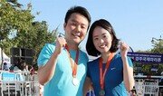 “5월에 출산한 뒤 이번이 아들과 함께하는 세 번째 달리기 대회(5km)예요.” 결혼 2년 차 신혼부부 남편 최재웅 씨(37)와 아내 윤수정 씨(30)는 21일 경주국제마라톤대회 5km 부문(마스터스)에 생후 5개월 된 아들(이선 군)을 유모차에 태우고 나와 완주에 성공했다. 이 부부는 연애를 시작한 2013년부터 지난해 임신 전까지 매년 4번 이상 국내 마라톤대회(마스터스 하프, 10km 등)에 참가할 정도로 달리기에 각별한 애정을 쏟았다. 상쾌한 아침 공기를 마시며 주변 경관을 감상할 수 있다는 것이 달리기의 매력. 아들이 자라면 건강한 취미 생활로 달리기에 입문했으면 하는 바람에서 이날도 유모차를 끌고 나왔다. 윤 씨는 “서울에 사는데 전날 경주로 와 주변 일대를 둘러봤다. 세 식구가 함께 뛰는 날을 꿈꾸며 임신 기간을 보냈다. 몸이 근질근질했다”며 웃었다. 최 씨는 “이달 초 손기정평화마라톤(3일)과 핑크런(14일)에 이어 세 번째로 유모차 달리기를 한 것”이라며 “아기가 어려 지금은 5km인데 점차 거리를 늘려가다가 훗날 손을 잡고 세 식구가 함께 뛰는 장면을 상상한다”고 말했다. 김동은 씨(52)는 발달장애 2급인 딸 미진 씨(21)의 손을 잡고 10km를 뛰었다. 용기와 자립심을 길러주고 싶은 마음에서다. 수시로 “할 수 있어”를 외치며 딸을 응원한 김 씨는 골인 지점을 통과한 뒤 “잘했어. 기특하다”라며 딸을 보고 활짝 웃었다. 김 씨는 “몇 년 전부터 매주 한 번씩 5km 달리기를 해왔는데 10km를 뛴 건 오늘이 처음”이라며 “달리기를 하면서 딸이 ‘오늘은 달리기 안 해?’라고 묻는 등 의사 표현이 늘고 활발해졌다”고 말했다. 김 씨 부녀를 비롯해 이날 대회에는 경주지역 발달장애인과 이들의 가족이 모인 마라톤 동호회 ‘달려라, 달팽이’ 회원 27명이 경주 시내를 달렸다. 경주=김재형 기자 monami@donga.com}