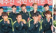 금메달을 목에 건 손흥민(26·토트넘)이 3일 인천국제공항 제2여객터미널 입국장에 들어서자 환호성과 플래시 세례가 쏟아졌다. 비가 오락가락하는 우중충한 바깥 날씨와는 달리 공항 안 한국 축구대표팀(23세 이하) 귀국 현장은 뜨거웠다. 팬 수백 명은 축하 글이 담긴 피켓을 들고 “(손)흥민 짱!” “빛(황)의조”를 외치며 ‘2연패’의 위업을 달성한 선수들을 열렬히 환영했다. 주요 국제 대회 때마다 아쉬운 성적에 굵은 눈물을 흘리다가 자카르타-팔렘방 아시아경기 금메달을 획득하며 활짝 웃었던 손흥민은 ‘국가와 국민’부터 얘기했다. 포토존에서 금메달을 깨무는 세리머니로 팬들의 성원에 화답한 손흥민은 “대한민국 유니폼을 입고 (첫) 우승을 하게 돼 기쁘다. 국민들의 성원에 감사하다”며 “축구 선수로서의 목표는 이게(금메달) 전부가 아니다. 앞으로가 더 중요하다”고 말했다. 소속 팀인 토트넘에 돌아가서도 최고의 선수로 우뚝 서겠다는 각오였다. 이번 대회에서 손흥민의 투혼은 빛났다. 뒤늦게 합류해 조별리그 첫 경기를 뛰지 않았지만 국제축구연맹(FIFA) 규정(경기 후 최소 48시간 휴식)에 어긋나는 2일 간격의 조별리그는 물론이고 16강부터 결승까지 6경기에 출전해 매번 다리에 경련이 일 정도로 뛰었다. 토트넘에서도 빡빡한 스케줄을 소화한 손흥민은 “중고교 이후 이렇게 (많이) 뛰어본 건 처음이다”라며 “(주장인) 내가 피곤해하면 다른 선수에게 악영향을 미칠 것 같아 더 땀 흘리려 노력했다”고 말했다. 대표팀에서 첫 주장 완장을 찬 손흥민은 이어 “이번 우승에 만족하지 않고 한국 축구를 위해 더 열심히 뛰겠다”는 남다른 사명감을 전했다. 우승을 이끈 대표팀 김학범 감독(58·사진)은 와일드카드로 선발된 세 명(손흥민, 황의조, 조현우)에게 공을 돌렸다. “(와일드카드 선수가) 이번만큼 고생한 적은 없는 것 같다. 후배들 앞에서 솔선수범하고 다독거리며 제가 봐도 안타까울 정도로 온 힘을 다했다.” ‘한일전을 앞두고 어떤 말을 했나’라는 질문엔 “‘일장기가 우리 태극기 위에 올라가는 일은 없어야 한다’고 강조했다”고 전했다. 김 감독은 이번 대회 목표인 아시아경기 2연패를 달성해 2020년 도쿄 올림픽까지 지휘봉을 계속 잡을 것으로 보인다. ‘인맥 논란’에 휘말렸다가 대회 9골로 맹활약한 황의조(26·감바 오사카)도 이날 한결 밝은 표정으로 취재진 앞에 섰다. 황의조는 “(논란이 일던) 처음부터 더 열심히 해야겠다는 생각밖에 없었다”며 “빡빡한 경기에 체력이 바닥났지만 정신력으로 완성한 우승이었다”고 말했다.김재형 기자 monami@donga.com}
