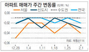 1월 취득세 감면 연장안 통과가 불발되면서 거래 관망세가 다시 짙어지는 모습이다. 여기에 설 연휴가 코앞으로 다가오면서 거래시장은 더 위축되고 있다. 지난주 아파트 매매 가격은 서울(―0.04%), 신도시(―0.03%), 수도권(―0.01%)이 모두 떨어졌다. 서울에서는 강서(―0.16%), 영등포(―0.14%), 송파(―0.13%), 동작(―0.11%) 순으로 내림세가 두드러졌다. 영등포구는 거래부진 속에 양평동 한솔 및 동보, 당산동 금호어울림 등 중대형이 500만∼3500만 원 떨어졌다. 반면 전세시장은 추위가 한풀 꺾이면서 신혼부부를 중심으로 전셋집을 찾는 이가 늘어나는 분위기였다. 가격이 저렴하면서 교통여건이 좋은 곳이나 출퇴근이 용이한 도심 및 업무지구 주변에서 수요가 이어졌다. 서울(0.06%), 신도시(0.01%), 수도권(0.02%) 전세금이 모두 오르는 등 상승세가 계속됐다.장윤정 기자 yunjung@donga.com}