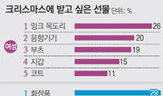 ‘크리스마스에 받고 싶은 선물’ 관련 조사에서 남성은 자신을 꾸미는 데 필요한 화장품이나 패션 소품을, 여성은 헤드폰 등 음향기기를 받고 싶어 한다는 결과가 나왔다. 언뜻 보면 남녀 취향에 대한 고정관념이 깨진 것처럼 보인다. 하지만 자세히 살펴보면 ‘상대방의 장점’에 기대 평소 갖고 싶어 하던 제품을 손에 넣으려 하기 때문이라는 점이 드러난다. 신세계백화점은 최근 20∼40대 남녀 고객 1020명을 대상으로 실시한 ‘연인·배우자에게서 크리스마스에 받고 싶은 선물’ 설문조사 결과를 17일 발표했다. 여성들은 추운 날씨에 방한용으로 필요한 실속 아이템을 선호하는 성향이 두드러졌다. 여성 선호 선물 1위는 밍크 목도리였으며, 겨울철 한파에 대비하기 위한 부츠(3위)와 코트(5위)도 상위권을 차지했다. 특이한 점은 음향기기가 여성 선호도 조사에서 2위에 올랐다는 것이었다. 최근 아기자기한 디자인의 헤드폰이나 무선 스피커 제품이 늘어났으며, 전자제품을 잘 아는 남성들이 괜찮은 물건을 골라주기를 바라는 여성들의 심리도 반영됐다는 분석이 나온다. 화장품은 상위권에 들지 못했다. 개인 선호도가 천차만별이라 여성 자신이 직접 사는 것을 선호해서라는 게 신세계백화점의 해석이다. 반면 남성 선호 선물 1위는 ‘화장품’이 차지했다. 2위에는 팔찌, 스카프, 손수건 등 남성용 패션 액세서리가 올랐다. 이런 현상의 주요 원인은 자신을 꾸미기 좋아하는 ‘남성 그루밍족’의 증가에 있다. 그러나 여기에도 남성보다 패션, 뷰티에 대한 정보가 많은 여성이 품질 좋은 상품을 골라 선물할 것을 기대하는 심리가 반영돼 있다. 한편 경기 불황의 영향으로 남녀 모두에서 고가의 명품 가방이나 주얼리, 시계 등을 받고 싶다는 응답은 소수에 불과했다.최고야 기자 best@donga.com}