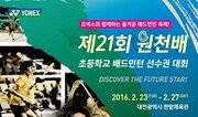 한국 셔틀콕 스타의 산실인 제21회 원천배 초등학교 배드민턴 선수권대회가 23일 대전 한밭체육관에서 막을 올려 27일까지 열린다. 요넥스코리아의 창립자인 김덕인 동승통상 회장의 아호를 딴 이 대회는 20년 넘는 역사 속에서 이용대, 성지현 등 38명의 전현직 배드민턴 국가대표 선수를 배출했다. 특히 이용대는 두 차례 최우수선수(MVP)에 뽑히며 일찌감치 주목을 받았다. 최근에는 일본, 중국, 대만 등 해외 유망주들까지 초청해 국제대회로 발돋움했다. 동승통상은 기업 이윤의 사회 환원 차원에서 숙식을 비롯한 출전 선수의 대회 출전 경비를 지원하고 있다. 24일에는 올림픽에이 e서 두 차례 금메달을 딴 김동문 원광대 교수가 참가하는 멘토 스쿨도 열리는 등 어린 선수들에게 다양한 재미와 경험을 줄 수 있는 행사도 진행한다. 올해부터는 한국 배드민턴의 취약 종목인 단식 육성을 위해 단체전은 단식만 진행하기로 했다.김종석기자 kjs0123@donga.com}