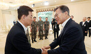 “한민구 전 국방부 장관은 정치적 어려움과 북한의 계속되는 도발 상황 속에서도 국민이 안심하도록 애써주셨다.” 문재인 대통령이 18일 전·현직 국방부 장관 등 주요 군 지휘부를 청와대로 초청해 오찬을 함께하며 이같이 말했다. 송영무 신임 국방부 장관 임명으로 박근혜 정부 때 임명된 군 고위 인사들이 자리를 떠나게 되자 마지막 예우의 메시지를 보낸 것이다. 이날 오찬은 최근 감사원이 국산 기동헬기 ‘수리온’ 개발과정 조사 결과를 발표하면서 강도 높은 방산비리 척결이 예고된 가운데 어수선한 군심을 다잡기 위한 차원에서 이뤄져 더 주목을 끌었다. 문 대통령은 “국가를 유지하는 기둥들이 많은데, 그중에서 가장 중요한 것이 국방과 경제다”라며 “경제는 조금 더 잘살기 위한 문제지만 국방은 국가의 존립과 생존이 달린 문제”라고 강조했다. 그러면서 현재 국내총생산(GDP) 대비 2.4% 수준인 국방예산을 임기 내 2.9%까지 끌어올리겠다는 뜻을 밝혔다. 이날 오찬에는 교체 대상으로 거론되는 이순진 합참의장, 임호영 한미연합사 부사령관, 전진구 해병대 사령관, 조현천 기무사령관 등이 참석했다. 전역을 앞둔 이순진 합참의장은 “아무리 무기체계를 고도화하더라도 군의 정신력이 가장 중요하다. 군이 자부심을 통해 강한 정신력을 가질 수 있도록 대통령께서 잘 이끌어 달라”고 말했다. 유근형 기자 noel@donga.com}