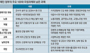 4·15총선으로 ‘슈퍼 여당’이 된 더불어민주당은 21대 국회에서 문재인 정부 100대 국정과제 완수를 위한 입법 과제 해결에 초점을 맞출 것으로 보인다. 대선 직후인 2017년 7월 발표된 100대 국정과제에는 고위공직자범죄수사처(공수처) 설치, 국가정보원의 대공수사권 이관 및 대외안보정보원으로의 개편, 재벌 총수 일가의 전횡 방지를 위한 다중대표소송제 도입 등이 포함돼 있다. 민주당 박용진 의원은 17일 라디오에서 총선 압승과 관련해 “다시 100대 과제를 열어보면서 국민에게 했던 약속을 이행할 시간”이라며 “180석이면 국회에서는 법을 개정하고 제도를 바꾸는 모든 일을 할 수 있다. 이제 모든 책임은 우리가 오롯이 져야 되는 상황이 된 것”이라고 밝혔다. 일단 초점은 권력기관 개혁 완수에 맞춰질 것으로 전망된다. 민주당은 20대 국회에서 미래통합당의 거센 반발에도 불구하고 ‘4+1 협의체’를 통해 공수처 설치 및 검경수사권 조정 관련 법안을 처리했다. 남은 법안은 경찰개혁법과 국정원법이다. 경찰개혁법은 국가경찰과 자치경찰 분리 등의 내용을 담고 있다. 대공수사권을 폐지하고 국내 정보 수집을 금지하는 국정원법 개정안도 국회에 계류 중이다. 국제노동기구(ILO) 핵심 협약 비준을 위한 노동조합법, 공무원노조법, 교원노조법 처리도 강하게 추진될 것으로 보인다. 총선 직전 한국노총이 민주당에 대한 지지를 약속하면서 가장 강하게 처리를 요구했던 법 개정 사안이다. 실업자와 해고자의 노조 가입을 인정하고 퇴직 공무원과 퇴직 교원 등의 노조 가입 허용을 주요내용으로 하고 있어 전국교직원노조와 전국공무원노조 합법화 여부가 달려 있다. 이 밖에 재벌 총수 일가의 전횡을 막고 지배구조를 개선하기 위한 전자투표제, 다중대표소송제 등의 내용이 담긴 상법 개정안 처리, 대기업의 불공정 갑질 행위를 개선하기 위한 징벌적 손해배상제 적용 등을 위한 가맹거래법, 대리점법 개정안 처리 등도 남은 과제다. 관련 법안은 모두 야당의 거센 반발에 부딪혀 국회에 계류 중이다. 남북 관계에선 ‘한반도 신경제구상 및 경제통일 구현’이라는 국정과제를 실현하기 위해 개성공단 및 금강산 관광 재개 필요성을 강조할 것으로 보인다.박성진 기자 psjin@donga.com}