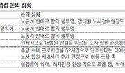 노동시장 구조개혁을 위한 노사정(勞使政) 대타협이 당초 협상 종료 시한인 31일 밤 12시까지 합의에 이르지 못했다. 경제사회발전노사정위원회 산하 노동시장 구조개선 특별위원회는 1일 새벽까지 막판 회담을 갖고 합의문 작성을 시도했지만 핵심 쟁점에 대한 견해차를 좁히지 못했다. 하지만 노사정은 1일까지 합의문을 도출한다는 목표로 논의를 계속하기로 했다. 노사정은 이날 실무진 및 전문가그룹으로 구성된 8인 연석회의와 김대환 노사정위원장, 이기권 고용노동부 장관, 김동만 한국노동조합총연맹 위원장, 박병원 한국경영자총협회장 등 노사정 최고위층 ‘빅4 회담’을 동시에 가동해 쟁점 조율에 나섰다. 그러나 △비정규직 고용기간 연장(2→4년) 및 파견업종 확대 △저(低)성과자 해고 요건 명확화 등 2개 핵심 쟁점에서 노사정 간 의견 차를 좁히지 못한 것으로 알려졌다. 당초 합의 가능성이 높았던 것으로 알려진 △근로시간 단축(주당 68시간→52시간) △직무성과급 중심으로의 임금체계 개편 △임금피크제 도입도 최종 합의에 이르지 못한 것으로 전해졌다. 한국노총은 이날 중앙집행위원회를 열고 이 같은 5개 의제에 대한 정부와 재계안을 절대 수용할 수 없다고 의결했다. 다만 노사정 협상에는 계속 참여하기로 했다. 정부는 일단 시한을 넘겼지만 협상을 계속한다는 입장이다.유성열 기자 ryu@donga.com}