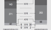 더불어민주당과 자유한국당 4·15총선 지역구 공천 신청 후보 가운데 50대 이상 후보가 86.6%에 이르는 것으로 나타났다. 총선을 앞두고 여야가 한목소리로 세대교체 공천을 강조하며 ‘젊은 피’ 수혈을 강조했지만 정작 공천 신청 후보 중 20, 30대는 3.4%에 그쳤다. 동아일보가 9일 민주당과 한국당의 지역구 공천 신청자 1105명의 연령대별 분포를 분석한 결과 50대 이상 후보는 957명으로 집계됐다. 민주당의 지역구 공천 신청자는 475명, 한국당은 647명. 한국당 신청자는 나이를 공개하지 않은 17명을 제외한 630명을 분석했다. 정당별로는 민주당 지역구 공천 신청자 중 50대 이상이 427명으로 89.9%에 달했다. 50대는 271명으로 전체 후보의 절반 이상(57.1%)을 차지했으며 60대가 143명(30.1%)으로 뒤를 이었다. 70대 이상 후보도 13명(2.7%)으로 집계됐다. 한국당 역시 530명(84.1%)이 50대 이상이었다. 50대는 283명(44.9%)으로 전체 후보의 절반을 밑돌았지만 60대와 70대는 각각 228명(36.3%), 19명(3.0%)으로 민주당보다 비율이 높았다. 반면 지역구 공천 신청자 중 20, 30대 비율은 전체의 3.4%였다. 지역구 공천 신청자 중 20대가 전무한 민주당은 30대 6명(1.3%)이 지역구 공천을 신청했지만 이들 역시 모두 38∼39세로 30대 후반. 한국당은 20대 2명(0.3%), 30대 30명(4.8%)이 지역구 공천 신청을 했다. 민주당은 만 45세 이하를, 한국당은 만 45세 미만을 ‘청년’으로 분류하고 있다. 정치권에서는 이 같은 결과가 각 당이 청년 인재를 적극 영입하겠다고 나서면서도 지역구 당선 가능성이나 현역 의원의 견제 등을 고려해 정작 청년들의 지역구 출마 기회를 열어주는 데는 소극적이기 때문이라는 지적이 나온다. 민주당 청년위원회 관계자는 “청년 후보 입장에서는 지역구 공천을 신청하고 싶어도 당에서 ‘교통정리’를 해주지 않는 한 현역 의원이 있는 지역구 공천을 신청하기가 어려운 게 현실”이라며 “말로는 세대교체를 외치고 있지만 이번 총선 역시 과거처럼 청년에게 비례대표 의석 몇 석을 떼어주는 수준에 그칠 것”이라고 했다. 수도권 출마를 검토하고 있는 민주당의 한 청년 후보는 “당내 청년 인재가 없는 것이 아니라 지역구 후보로 육성하고 지원하는 당의 프로그램이 부족한 것”이라고 지적했다. 이 때문에 4·15총선 역시 결국 ‘노풍(老風)’ 속에 치러지는 것 아니냐는 전망도 나온다. 실제 17대 총선 당시 51.6세이던 당선자 평균 연령은 20대 총선에선 55.5세로 꾸준히 오르며 국회의 ‘올드보이화’ 현상이 뚜렷해지고 있다. 이번 총선 공천 신청자의 평균 연령은 민주당이 57.2세, 한국당이 56.6세다. 한국당 관계자는 “당이 젊어지려고 노력은 많이 하고 있지만, 젊은층이 우리 당에 갖고 있는 이미지가 우호적이지 않다 보니 청년 인재 영입이 계획만큼 되지 않는 측면도 있다”고 했다.강성휘 yolo@donga.com·이지훈 기자}