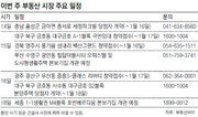 부동산써브에 따르면 이번 주 분양시장은 청약접수 3곳, 당첨자 계약 2곳, 본보기집 개관 2곳 등이 예정돼 있다. 15일 힐탑건설이 부산 수영구 광안동 663-1번지 일대에 분양하는 ‘힐탑더블시티’ 오피스텔 및 도시형생활주택의 본보기집을 개관할 예정이다. 부산지하철 2호선 수영역이 약 50m 거리에 있고 단지 인근에 신세계백화점 센텀시티점, 롯데백화점 센텀시티점, 홈플러스 센텀시티점 등이 위치해있다. 16일 중흥건설은 광주 광산구 우산동 1357번지 일대에 공급하는 ‘중흥S-클래스 리버티’의 청약접수를 진행한다. 지하 2층∼지상 20층 12개 동, 전용면적 74∼84m² 총 849채로 구성된다. 18일에는 호반건설이 세종시 1-1생활권 M4블록에 공급하는 ‘호반베르디움5차’의 본보기집을 개관할 예정이다. 전용면적 59∼84m² 총 688채로 구성된다. 단지 인근에 면적 32만 m² 규모의 근린공원이 위치해 있고 복합커뮤니티센터도 가까운 편이다. 8개 학교(초등 5개교, 중등 2개교, 고등 1개교)가 개교해 교육환경이 좋은 편이다.장윤정 기자 yunjung@donga.com}