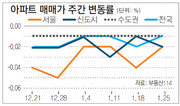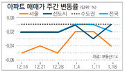 지난해 말로 취득세 감면 혜택이 종료되면서 거래 공백이 이어지고 있는 가운데 지난주 아파트 매매 가격은 서울(―0.04%), 신도시(―0.01%), 수도권(―0.01%) 모두 소폭 하락했다. 서울 재건축 아파트 가격 역시 수요자들이 관망세를 보이면서 0.05% 떨어지는 등 하락세가 이어졌다. 다만 송파구 잠실 주공5단지는 조합설립을 위한 동의서를 걷는 등 기대감으로 일부 매물이 회수되면서 올랐다. 전세시장에서는 한파가 잠시 물러가고 예년 기온을 회복하면서 신혼부부 등 전셋집을 찾는 수요가 다소 늘었다. 가격이 상대적으로 저렴하거나 도심권 접근이 좋은 지역에서 발길이 이어지면서 서울(0.05%), 신도시(0.01%), 수도권(0.01%) 모두 전세가격이 상승세로 돌아섰다. 서울에서는 강서(0.11%), 성북(0.10%), 강남(0.10%), 종로(0.09%) 등의 순으로 오름세가 두드러졌다. 장윤정 기자 yunjung@donga.com}