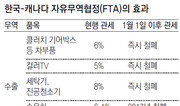 한국과 캐나다의 자유무역협정(FTA)이 내년 1월 1일부터 공식 발효된다. 한국산 자동차, 가전제품의 수출길이 넓어질 뿐 아니라 구스다운(거위털) 점퍼 등 한국에서 인기가 높은 캐나다산 제품들의 수입 가격이 떨어지는 효과가 있을 것으로 기대된다. 산업통상자원부는 13일 FTA 이행준비 절차를 완료했다는 내용의 서신을 캐나다와 교환하고 2015년 1월 1일부터 양국 간 FTA를 공식 발효키로 합의했다고 밝혔다. 지난해 6월 한국이 캐나다와 FTA 협정문에 가서명한 지 6개월여 만에 협정을 시행하는 것이다. FTA가 정식 발효됨에 따라 한국 자동차업계가 캐나다에 수출하는 승용차의 관세는 현행 6.1%에서 3년간 단계적으로 감축돼 2017년 1월 1일부터 무관세로 바뀐다. 타이어에 붙는 7%의 세금은 5년간 단계적으로 줄어 2019년 1월 1일 철폐된다. 컬러TV(5%), 세탁기 및 진공청소기(8%) 등에 붙는 관세는 내년 1월 1일부터 바로 없어진다. 한국 소비자들의 관심이 높은 거위털 점퍼 ‘캐나다구스’ 수입품에 붙는 13%의 관세는 내년 1월 1일부터 즉시 철폐된다. 하지만 현재 시중에서 판매되고 있는 캐나다구스 제품은 올해 1, 2월에 미리 계약해 8월부터 국내에 들여와 팔기 시작한 제품이어서 올겨울에 가격이 곧바로 내려가지는 않을 것으로 보인다. 아웃도어업계 관계자들은 내년 1, 2월에 계약해 하반기부터 판매할 제품부터 가격이 인하될 것으로 전망했다. 수입업체인 코넥스솔루션 관계자는 “올해 공급된 제품의 경우 이미 국내로 들여와 가격 책정이 모두 끝났기 때문에 가격 변화가 없다”며 “내년 제품의 경우 이번 겨울이 끝나면 본사와 협의를 통해 적정한 가격을 결정할 계획”이라고 말했다. 또 캐나다구스를 병행 수입해 판매하는 롯데마트 측은 “가격 검토를 통해 캐나다 직수입으로 전환을 하더라도 실제 가격 인하 시기는 내년 겨울부터가 될 것”이라고 말했다. 한편 캐나다산 쇠고기에 붙는 40%의 관세는 향후 15년 동안 단계적으로 없어진다. 냉장 돼지고기(22.5%) 및 냉동삼겹살(25%)은 향후 13년 내에 무관세로 바뀐다.최고야 best@donga.com / 세종=홍수용 기자}