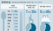 20대 청년일수록 야외 활동보다 자리에 앉아서 보내는 시간이 긴 것으로 나타났다. 여기에 ‘하루 평균 수면시간 6시간 48분’ ‘하루 평균 커피 1.7잔 섭취’ 등은 오늘날 한국인의 삶을 보여주는 수치들이다. 보건복지부와 질병관리본부가 공개한 ‘2014 국민건강통계’를 통해 한국인의 삶을 들여다봤다.○ ‘앉아서 7시간 반’ 대사증후군 위험 19세 이상 성인 5632명을 대상으로 한국인의 생활습관을 분석한 이번 통계에 따르면 한국인이 하루 평균 앉아서 보내는 시간은 7시간 반(남성 7시간 42분, 여성 7시간 24분)으로 나타났다. 한국인의 하루 평균 수면시간이 6시간 48분으로 나타났는데, 이를 보면 실제 한국인의 야외 활동 시간은 그리 길지 않은 셈이다. 19∼29세 청년의 야외 활동이 더 많을 것 같지만, 실제로는 8시간 42분 앉아서 생활하는 것으로 나타났다. 취업 준비와 사회초년생 생활을 거치면서 오히려 책상에 앉아 있는 시간이 더 많은 것으로 풀이된다. 이는 30대(7시간 36분), 40대(7시간 18분), 50대(7시간 6분), 60대(6시간 42분)로 연령대가 높아질수록 점차 줄어들었다. 특히 도시에 거주하는 사람일수록 자리에 앉아서 보내는 시간이 길었다. 도시 거주자(동 거주자)가 앉아 보내는 시간은 하루 7시간 42분으로 읍면 거주자(6시간 48분)보다 길었다. 앉아서 많은 시간을 보내는 반면 건강을 위한 걷기 활동은 부족했다. 1주일 동안 걷기를 1회 10분 이상, 1일 총 30분 이상, 주 5일 이상 실천한 비율을 뜻하는 ‘걷기 실천율’은 41.3% 정도로 나타났다. 국민들의 높은 비만율도 이러한 운동 부족이 영향을 미친 것으로 풀이된다. 성인 중 체중을 키의 제곱으로 나눈 체질량지수가 m²당 25kg 이상인 비만율은 31.5%로 집계됐다. 성인 3명 중 한 명은 비만인 셈. 앉아서 보내는 시간이 길어질수록 건강에 악영향을 미치는 만큼 걷기 운동을 하라는 것이 전문가들의 조언이다. 경희대병원 내분비내과 이상열 교수는 “하루 평균 5∼7시간 앉아서 시간을 보내면 비만과 당뇨병 등 대사증후군에 걸릴 확률이 높아진다”며 “의자를 벗어나 의식적으로 계단을 걷고 스트레칭을 하는 등 운동을 꾸준히 해야 한다”고 조언했다.○ 커피가 쌀밥 섭취 횟수의 2배 성인 남녀가 가장 많이 섭취하는 식품은 커피로 나타난 점도 흥미롭다. 성인 3417명을 대상으로 식습관을 조사한 결과 커피가 주당 섭취 비율이 가장 높은 것으로 나타났다. 일주일에 커피를 얼마나 자주 마시느냐는 질문에 평균 11.99회라는 결과가 나왔다. 하루에 1.7잔을 마시는 꼴이다. 남성이 14.3회로 여성의 9.6회보다 많았다. 주식으로 불리는 쌀밥의 일주일 섭취 빈도는 6.52회로 커피에 한참 못 미칠 뿐 아니라, 하루에 한 끼 정도만 먹는 것으로 나타났다. 단, 쌀밥뿐 아니라 잡곡밥·비빔밥·볶음밥(0.61회), 김밥(0.47회), 카레밥(0.21회) 등을 포함한 전체 밥류는 하루 평균 2.39회 섭취하는 것으로 나타났다. 또 한국인은 라면을 일주일에 한 번 이상(1.14회)은 먹는 것으로 나타났다. 가장 좋아하는 반찬은 배추김치(주 10.76회)이고, 과일 중에서는 사과(주 1.64회)를 가장 많이 먹는 것으로 나타났다. 또 가족과 함께 저녁을 먹는다고 대답한 사람의 비율은 64.9%로 3명 중 2명꼴이었다. 저녁을 가족과 함께 먹는다고 대답한 비율은 2005년 76.1%에서 2008년 68.6%, 2012년 65.7%로 지속적으로 낮아지는 추세다.임현석 기자 lhs@donga.com}