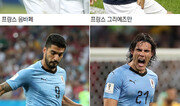 유럽과 남미의 자존심 대결. 6일 밤 펼쳐지는 프랑스와 우루과이, 브라질과 벨기에의 8강 대결을 압축하는 표현이다. 아시아 아프리카 국가가 모조리 탈락한 가운데 남미도 우루과이와 브라질 두 팀밖에 남지 않았다. 이 중 프랑스-우루과이전은 2018 러시아 월드컵 8강 대결팀 가운데 유일하게 챔피언 경력이 있는 팀들 간의 대결이다. 프랑스는 1998년 프랑스 월드컵에서, 우루과이는 제1회 월드컵이었던 1930년 우루과이 월드컵과 1950년 브라질 월드컵에서 우승을 맛봤다. 8강 진출국 중 평균 나이(26세)가 가장 적은 프랑스는 역습이나 속공 시 발 빠르게 움직일 선수가 많다는 게 장점이다. 우루과이의 평균 연령은 28세이다. 특히 4-2-3-1을 주요 전술로 활용하고 있는 프랑스의 두 젊은 2선 공격수 킬리안 음바페(20)와 앙투안 그리에즈만(27)의 활약이 매섭다. 프랑스는 4경기서 7득점 4실점했다. 둘은 프랑스 득점의 절반이 넘는 5골을 합작했다. 두 선수는 프랑스 ‘전광석화’ 공격의 핵심이다. 이번 대회서 측정된 둘의 최고 속도는 각각 시속 32.4km. 우루과이에서 가장 발 빠른 크리스티안 로드리게스(32.18km)보다 앞서고 둘의 마크맨으로 예상되는 우루과이의 디에고 고딘과 호세 히메네스(이상 26.1km)를 크게 앞선다. 좁은 공간에서 순간 속도를 앞세워 아르헨티나를 무너뜨렸던 공격이 재현된다면 우루과이의 철벽수비도 무너질 수 있다. 변수는 16강전까지 이들과 2선 공격수로 호흡을 맞췄던 블레즈 마튀디(31)가 경고누적으로 8강전에 나올 수 없다는 것. 그를 대신할 선수로 우스만 뎀벨레(21) 등이 언급되고 있지만 마튀디의 폭넓은 활동량을 대체할 수 있을지는 미지수다. 프랑스는 이 밖에 올리비에 지루, 폴 포그바, 뱅자맹 파바르 등 핵심선수들의 경고가 많은 것도 부담이다. 이들은 경고를 더 받으면 4강에 나설 수 없다. 우루과이는 7득점 1실점으로 이번 대회 8강 팀 중 브라질과 함께 최소 실점을 기록 중이다. 4-4-2를 쓰는 우루과이의 핵심 수비수는 스페인 프리메라리가의 아틀레티코 마드리드(AT마드리드)에서 호흡을 맞추고 있는 고딘과 히메네스다. 32세 관록의 고딘이 음바페를 얼마나 봉쇄할 수 있을지가 관건이다. ‘영혼의 단짝’이라 불리는 31세 동갑내기 투 톱 루이스 수아레스와 에딘손 카바니는 우루과이가 4경기에서 날린 총 50개의 슈팅 중 31개를 차지했다. 수아레스가 2골, 카바니가 3골을 기록 중이다. 16강전에서 우루과이가 날린 총 6개의 슈팅은 모두 수아레스(3개)와 카바니(3개)가 차지했다. 문제는 카바니가 16강전에 당한 부상(왼쪽 장딴지)으로 8강전 출전 여부가 불투명하다는 점이다. 1일 포르투갈전에서 두 골을 넣으며 조국의 8강행을 결정지은 카바니는 경기 막판 부상으로 절뚝이며 경기장을 빠져나갔다. 카바니의 8강전 출전 여부는 경기 직전에야 확정될 것으로 보인다. 우루과이 축구협회는 4일 공식 트위터를 통해 카바니의 검사 결과지를 올렸다. 그 결과지를 통해 그의 부상이 장기간 치료가 필요한 햄스트링(허벅지 뒷근육) 부상이 아니라 종아리에 약간의 부종이 생긴 것이라고 알리며 8강전 출전 가능성을 열어둔 것이다. 한편 우루과이의 고딘과 AT마드리드에서 한솥밥을 먹고 있는 프랑스의 그리에즈만은 평소 우루과이를 ‘제2의 조국’으로 부를 만큼 우루과이에 애정을 갖고 있다. 그리에즈만은 고딘의 세 살배기 딸의 대부이기도 하다. 하지만 수아레스는 “그리에즈만은 그냥 프랑스인이다”라고 발끈하며 긴장감을 높였다. 김재형 기자 monami@donga.com}