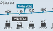 최경환 경제부총리 겸 기획재정부 장관 꺼낸 ‘최저임금 인상’ 카드에 대해 새누리당과 청와대가 한목소리를 내기로 한 것은 이 정책을 통해 근로자간 임금격차 완화와 내수 활성화라는 두 마리 토끼를 잡을 수 있다고 봤기 때문이다. 최저임금을 올리면 수입이 적은 최하위 20% 소득계층에 속하는 근로자들의 월급이 다소 늘어 고소득 근로자와의 격차가 줄어들고 이들의 소비가 늘어 경기 회복의 마중물 역할을 할 수 있다는 것이다. 디플레이션(저물가 속 경기침체) 우려가 커지고 있는 상황에서 임금 상승과 소비활성화가 현재 쓸 수 있는 가장 효율적인 수단이라는 게 정부의 판단이다. ●‘밑바닥 임금’ 올려 경기부양 박근혜 정부가 들어선 이후 최저임금은 2014년(5210원) 7.2%, 올해(5580원) 7.1% 등 2년 연속 7% 이상 올랐다. 2.75~6.1%였던 이명박 정부 때보다 인상률이 높고, 8.3%가 올랐던 2008년(3770원) 이후 처음으로 2년 연속 7%를 넘긴 것이다. 전문가들은 최저임금이 인상되면 저소득층의 소득이 늘어나는 만큼 근로자간 양극화가 어느 정도 해소될 뿐 아니라 소비성향이 높은 저소득층의 소비가 즉각적으로 늘어나는 효과도 기대할 수 있다고 본다. 현재 가계가 실제 쓸 수 있는 돈인 가처분소득 대비 소비 지출액의 비율을 나타내는 평균소비성향은 지난해 72.9%였다. 쓸 수 있는 돈이 100만 원인데 72만9000원만 지출하고 나머지는 저축을 했다는 뜻이다. 하지만 소득계층별로 보면 소비패턴이 완전히 달라진다. 지난해에 소득 최상위 20% 계층의 평균소비성향은 61.6%로 낮았던 반면 최하위 20% 계층은 104.1%나 됐다. 저소득층은 버는 대로 다 쓰고도 부족했다는 의미다. 이런 상황에서 최저임금 수준을 높이면 인상된 임금이 고스란히 소비로 이어진다. 이른바 ‘밑바닥 임금 수준’을 끌어올림으로써 내수 활성화에 도움을 주는 선순환 구조를 만들 수 있다는 것이다. 한국직업능력개발원 정원호 연구위원은 ‘일자리 확대를 위한 노동조합의 역할’이라는 보고서를 통해 “임금 인상으로 소득분배율이 상승하면 경제 성장과 고용 증대의 효과를 낼 수 있다”고 분석했다. ● 편의점 PC방 등 영세업체들 타격 최저임금이 대폭 인상돼도 이미 최저임금 이상의 임금을 지급하고 있는 대기업들의 부담은 거의 늘지 않는다. 다만 섬유 신발 인쇄 등 임금수준이 낮은 일부 제조업과 편의점, PC방, 커피전문점 등 시급제 아르바이트생을 많이 쓰는 업체들이 타격을 받을 수 있다. 서울 종로구에서 피자 가게를 운영하는 한 점주는 “불황으로 매출이 줄고 있는데 인건비 지출이 많아져 수익이 줄어들까 걱정된다”며 “단골 고객에게 주던 쿠폰을 없애는 것도 고려 중”이라고 말했다. 또 편의점 업계 관계자는 “점포 수가 많아지면서 점포당 매출은 정체인데 인건비를 포함한 비용이 올라가면 그 부담은 고스란히 점주에게 돌아간다”고 말했다. 편의점 점포의 운영비 대비 인건비 비중은 40~50% 정도로 높은 편이다. 가맹점 위주로 사업을 하는 한 커피 전문점 관계자는 “현재도 인건비가 가맹점포 매출의 최소 20% 이상 된다”며 “더 높아지면 아르바이트생 수를 줄이는 점포가 많아지고 이는 결국 서비스 수준 하락으로 이어져 소비자들이 피해를 볼 것 같다”고 말했다. 한국외식산업협회의 한 관계자는 “정부 및 외식업체, 자영업자들 등이 함께 논의 기구를 만들어 충분히 대화를 나눈 후 시급을 조정해야 한다”고 말했다.강유현기자 yhkang@donga.com유성열기자 ryu@donga.com}