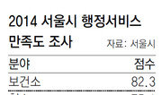 서울시민들은 도로 관련 서비스에 불만이 큰 것으로 나타났다. 서울시는 지난해 10월부터 올해 2월까지 시민 1만7000여 명을 대상으로 실시한 ‘2014년 서울시 행정서비스 만족도 조사’ 결과를 15일 공개했다. 시는 42개 조사 부문 중 일부를 선별해 매년 만족도 조사를 하는데 이번엔 8개 부문이 대상이다. 이 가운데 도로 부문이 종합점수 60점으로 만족도가 가장 낮았다. 건강위생(63점) 자전거안전(63.5점) 공공도서관(70.6점) 한강공원(73.6점) 상수도(74.7점) 청소(75.1점) 부문도 점수가 낮은 편이었다. 그나마 조사 대상 가운데 보건소(82.3점)의 만족도 점수가 가장 높았다. 도로 부문은 2013년(56.9점)보다 소폭 오르기는 했지만 여전히 최저점을 기록했다. 특히 보행자(60.6점)보다 운전자(59.4점)의 만족도가 낮았다. 세부적으로 △도로교통 안전성 59.0점 △도로교통 편리성 58.9점 △보행자 안전성 60.4점 △보행자 편리성이 61.4점을 기록했다. 시는 불편 사항이 많이 지적된 도로변 불법주차, 도로포장 파손, 야간보행 안전성 등을 지속적으로 개선할 계획이다. 황인찬 기자 hic@donga.com}