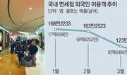 중국 정부의 한국 관광 금지 조치로 국내 면세점의 월간 외국인 이용객 수가 100만 명 이하로 떨어졌다. 23일 한국면세점협회에 따르면 4월 한 달간 국내 면세점을 이용한 외국인 관광객 수는 99만8065명이었다. 전년 동기 183만849명의 절반 수준이다. 2월과 비교해도 38.9%나 감소했다. 중국은 3월 15일 자국민에 대한 한국 관광 금지령을 내렸다. 외국인 이용객이 100만 명 이하를 기록한 것은 메르스(MERS·중동호흡기증후군) 사태가 발생한 2015년 이후 처음이다. 외국인 면세점 이용객은 그해 6월과 7월 각각 94만5716명, 68만8010명이었지만 이후에는 100만 명 이상을 유지해 왔다. 반면 지난달 내국인 면세점 이용객은 270만5479명으로 늘어났다. 지난해 12월(227만1534명) 이후 5개월 연속 증가했다. 총 매출도 쪼그라들었다. 외국인 매출은 2월 8억8254만 달러에서 4월 5억9015만 달러로 감소했다. 같은 기간 내국인 매출은 2억5771만 달러에서 2억9906만 달러로 증가했다. 이새샘 기자 iamsam@donga.com}