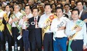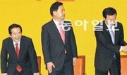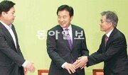 “1997년 국제통화기금(IMF) 관리체제가 준비된 선장 김대중 전 대통령(DJ)을 불렀던 것처럼 2012년 경제위기도 준비된 선장을 부르고 있다.”(민주통합당 손학규 상임고문) “1995년 김대중 대통령의 권유로 정치를 시작한 후 단 한 차례도 개인의 영광을 앞세우지 않았다.”(정세균 의원) 25일 광주 김대중컨벤션센터에서는 3000여 명이 모인 가운데 DJ의 후계자가 되겠다는 민주당 대선주자들의 구애가 메아리쳤다. 민주당의 전통 지지 기반인 호남은 정동영 상임고문의 불출마로 무주공산이 돼 이번 경선의 최대 승부처로 간주된다. 대선주자들은 저마다 DJ와의 인연을 강조하며 자신이 정권교체를 이룰 적임자라고 강조했다. 김두관 전 경남도지사는 “노무현 전 대통령이 서거했을 때 김 전 대통령은 ‘내 몸의 절반이 무너진 것 같은 심정’이라고 하셨다. 경상도에서 김대중 당 한다고 수없이 욕을 먹으면서 뚝심으로 버틴 김두관이 무너진 절반을 찾아드리겠다”고 열변을 통했다. 전날 방송토론에서 ‘(노무현 정부 당시) 대북송금 수사가 대선자금 수사로 번지는 것을 막기 위해 특검 쪽을 선택했다’는 취지로 말한 문재인 의원에 대한 공격도 이어졌다. 박준영 전남도지사는 “(특검) 당시 김 전 대통령은 가슴이 무너진 것 같다고 울먹였다. 저와 여러분도 똑같이 가슴이 무너졌다”고 목소리를 높였다. 문 의원은 “김 전 대통령께서는 마지막 유훈에서 ‘반드시 단결해 정권교체를 이뤄내라’고 하셨다. 못다 이룬 뜻을 제가 이어가려 한다”고 말했다. 민주당은 부산(26일) 대전(27일) 서울(28일)에서 세 차례 더 합동연설회를 연 뒤 여론조사를 통한 예비경선 결과를 30일 발표한다.광주=장원재 기자 peacechaos@donga.com}