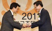 20일 서울 중구 소공동 웨스틴조선호텔에서 임규진 동아일보 산업부장(오른쪽)이 정상국 한국광고주협회 운영위원장으로부터 ‘광고주가 뽑은 좋은 신문기획상’을 받고 있다. 광고주협회는 본보가 6월과 7월 세 차례에 걸쳐 보도한 ‘기업이 미래다’ 기획 시리즈를 수상작으로 선정하고 “한국 기업의 미래 비전과 글로벌화, 사회공헌활동을 보도함으로써 국민들에게 우리 기업에 대한 자부심을 고취시키고 기업인의 사기를 높였다”고 평가했다. 김재명 기자 base@donga.com}
