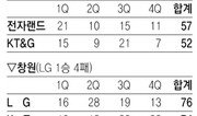 각각 KT-KT&G전 4연패 끊어 시즌 4연패를 당한 팀의 설욕의 날이었다. LG가 팀의 마스코트 송골매(세이커스)처럼 날아올라 천적 KT를 잡고 5연승을 달렸다. LG는 14일 창원에서 열린 홈경기에서 막판까지 따라붙는 KT의 끈질긴 추격을 뿌리치고 76-74로 승리했다. 이날 승리로 LG는 이번 시즌 KT전 4연패 끝에 첫 승리를 기록했다. 22승(15패)째를 거두며 4라운드를 마무리한 LG는 6위 삼성(16승 19패)과 승차를 5경기로 벌리면서 4위 동부(24승 12패)에는 2.5경기 차로 따라붙어 남은 5, 6라운드에서 4강 진입을 노려 볼 수 있게 됐다. LG는 63-51로 3쿼터를 마쳐 여유를 갖고 4쿼터를 맞았으나 KT 김영환(18득점)과 제스퍼 존슨(16득점)에게 수비가 뚫리면서 종료 2분가량을 남겨두고 역전을 허용해 위기를 맞았다. 김영환은 종료 3분 40초경 65-69로 추격하는 3점슛을 넣었고 72-71로 전세를 뒤집는 역전 3점포까지 터뜨리는 등 4쿼터에만 3점슛 2개를 포함해 8점을 넣었다. 하지만 LG는 다시 연속 2점슛으로 4점을 보태 한숨 돌렸다. 문태영은 종료 4초 전 75-74로 쫓긴 상황에서도 상대 골밑슛을 블록슛으로 차단하는 해결사 역할을 하며 막판 승리를 지켜내는 데 수훈갑이 됐다. 문태영은 30득점 9리바운드로 공격과 수비에서 맹활약했고 15득점 9리바운드를 기록한 크리스 알렉산더도 승리에 힘을 보탰다. 2연패를 당한 KT는 26승 11패로 KCC와 공동 2위. 전자랜드도 안양에서 열린 KT&G와의 방문 경기에서 57-52로 승리해 KT&G전 4연패 끝에 첫 승리를 거뒀다. 아말 맥카스킬이 15득점 10리바운드로 활약했고 박성진도 13점을 넣으며 공격에 힘을 보탰다. 12승(25패)째를 거둔 전자랜드는 KT&G(11승 25패)와 순위 바꿈을 하고 7위로 올라섰다. 두 팀의 점수를 합친 109점은 역대 한 경기 최소 득점이다. 종전 기록은 2005∼2006시즌 모비스(60점)와 LG(50점) 경기에서 나온 110점.이종석 기자 wing@donga.com}